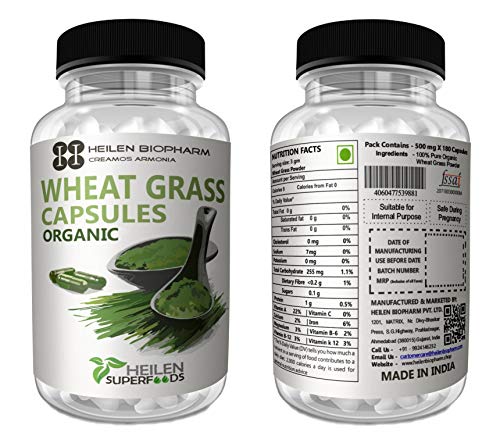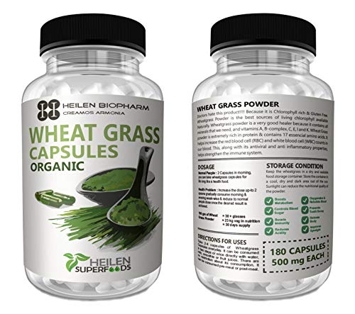 Heilen Biopharm Organic Wheat Grass Gluten Free Powder (500 mg X 360 Capsules 180 g)