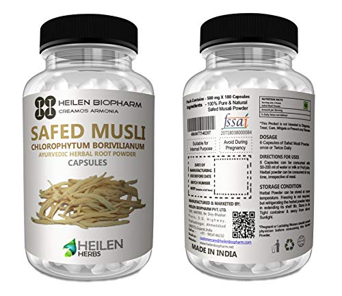 Heilen Biopharm Safed Musli Capsule 500 mg X 360 Capsules(Chlorophytum Borivilianum) 180 Grams