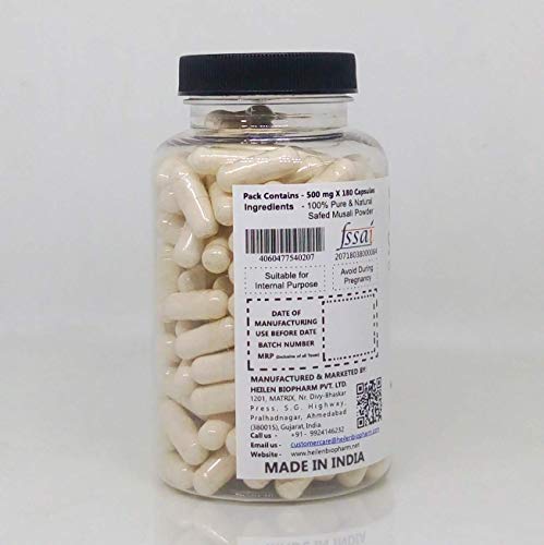 Heilen Biopharm Safed Musli Capsules For Immunity Improvement - 500 mg X 180 Per Bottle I Pack of 1