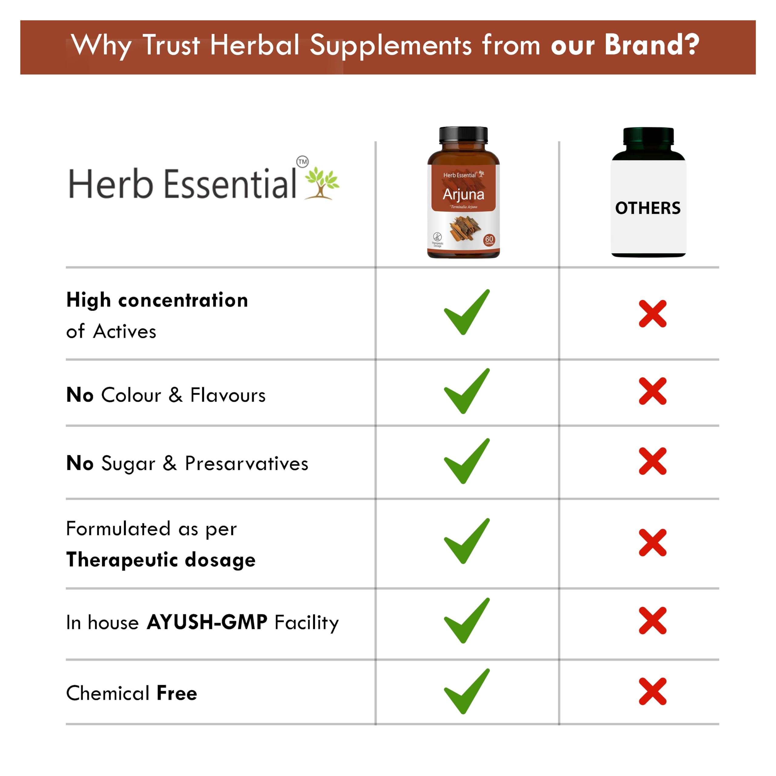 Herb Essential Arjuna (Terminalia arjuna) is rich in magnesium zinc calcium copper and which has antioxidant heart-strengthening astringent & lipid level-lowering properties.