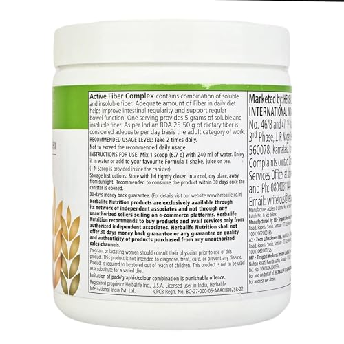 Well-balanced formula improves regularity and bowel function . One serving of Active fiber complex provides 5g of dietary fiber (soluble & insoluble fiber) It is a Dietary Fiber supplement. Contains a blend of soluble and insoluble fiber from various fruits and vegetable sources which help support gastrointestinal health. Usage Mix 1 scoop with 240ml of water. Enjoy it in water or add to your favorite Formula 1 Shake or Juice. Take 1 - 2 times a day