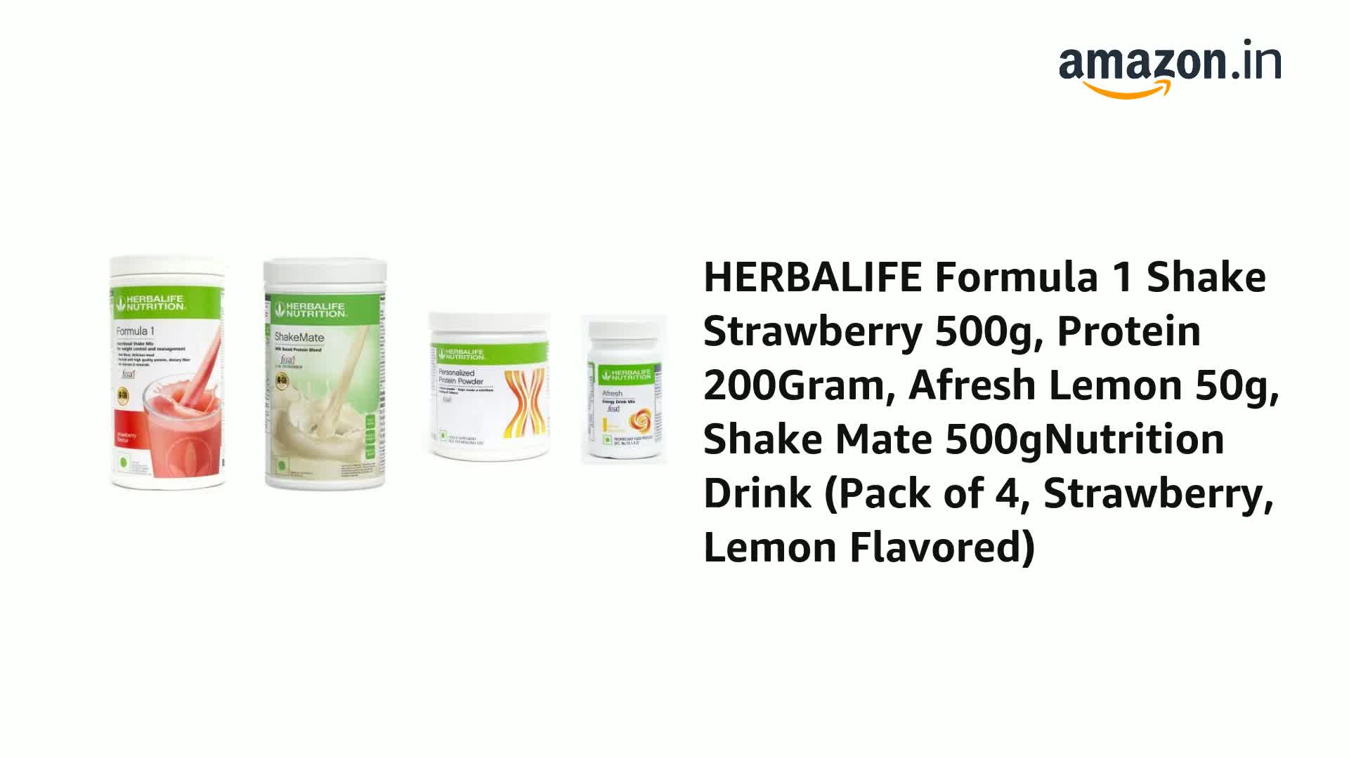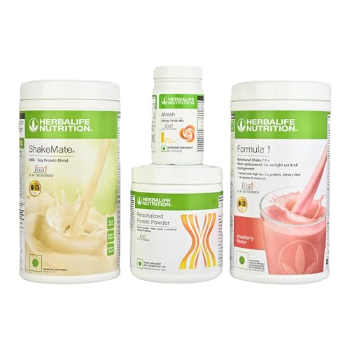 HERBALIFE Formula 1 Shake Strawberry 500g, Protein 200Gram, Afresh Lemon 50g, ShakeMate 500gNutrition Drink (Pack of 4, Strawberry, Lemon Flavored)