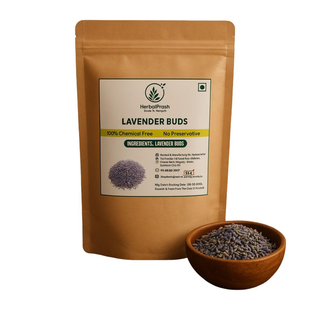 100% Natural & Sun-Dried Premium Quality Lavender! HerbalPrash Lavender Buds are carefully handpicked naturally sun-dried and free from additives preservatives and artificial colors to retain their natural aroma flavor and therapeutic benefits.