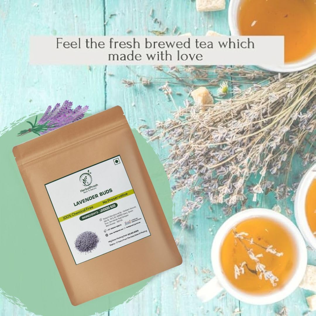 HerbalPrash Dried Lavender Buds - 50g | 100% Natural & Fragrant | Culinary Grade for Tea Baking Aromatherapy & Skincare | Stress Relief & Relaxation