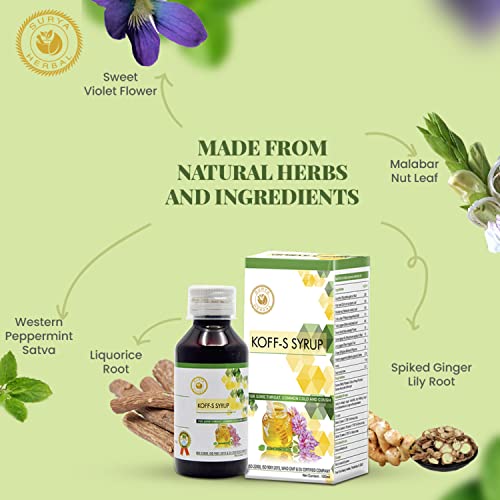 Discover the natural way to soothe your throat with Surya Herbal's Koff-S Syrup. This authentic Ayurvedic formulation enriched with honey is meticulously crafted to provide relief from coughs without making you drowsy. And for your peace of mind it's completely alcohol-free.