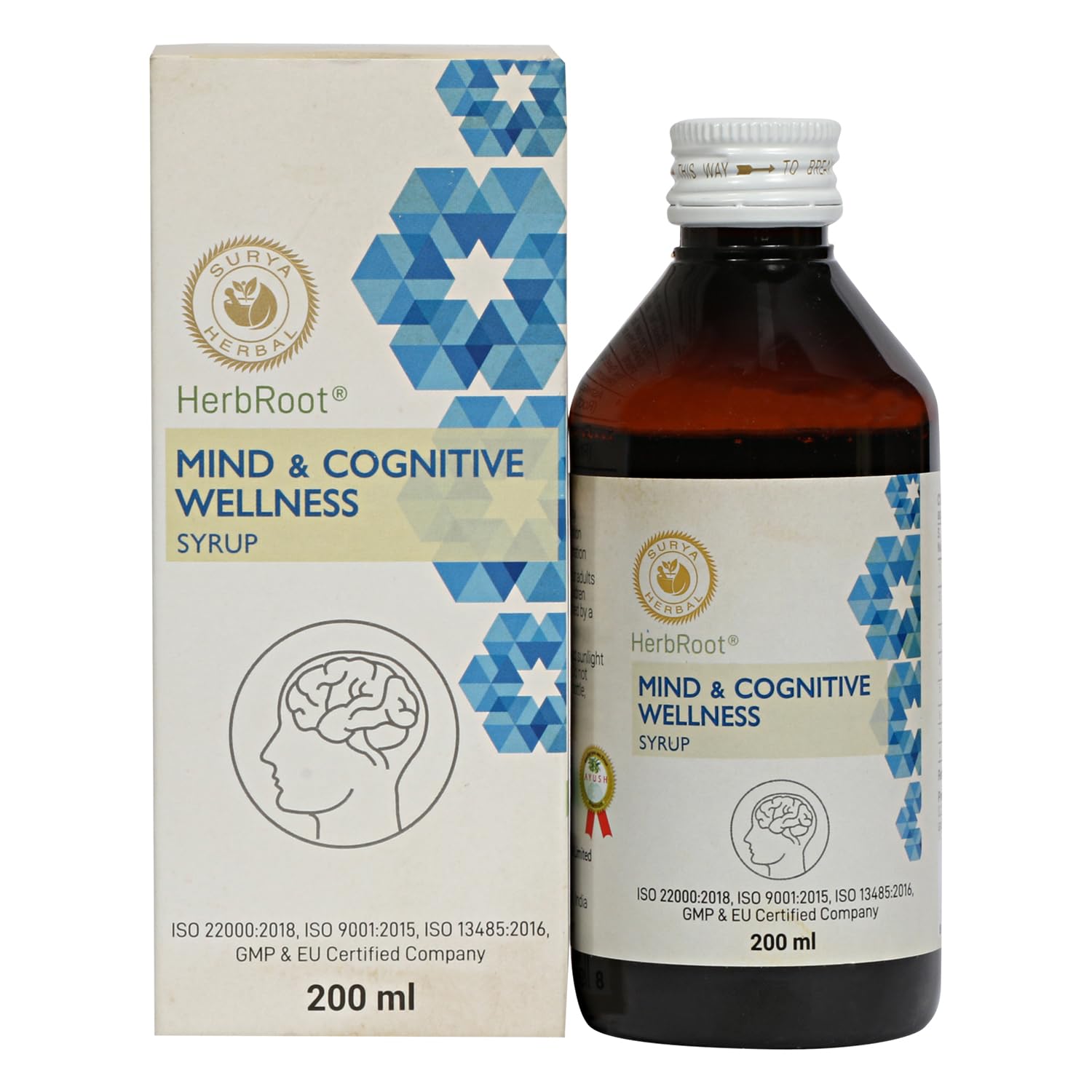 HerbRoot Surya Herbal Mind & Cognitive Wellness Syrup, 200ml, (Pack of 3)