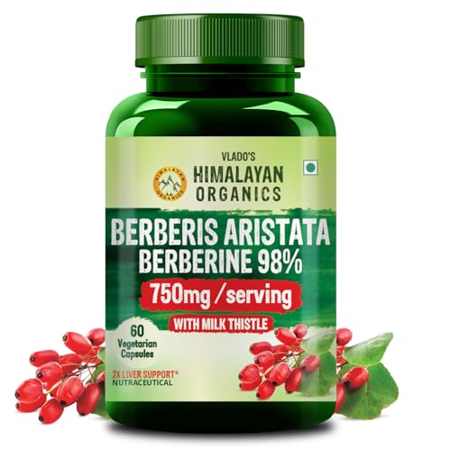 Vlado's Himalayan Organics Berberis Berberine 98% with Milk Thistle I Berberine Capsules 750 mg | Berberine Supplements for 2X Liver Support I Berberis Aristata ISupports Liver Health, Antioxidant Protection & Weight Management | Herbal Formula for Detox