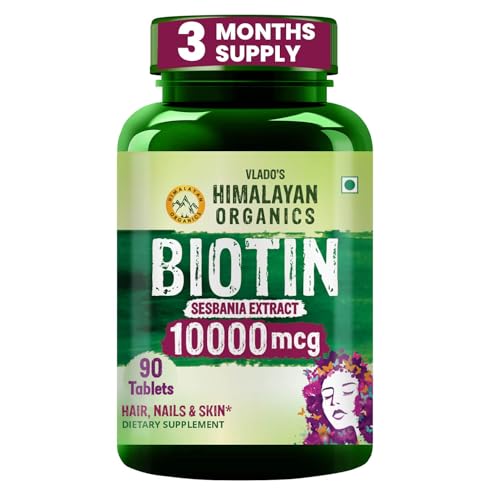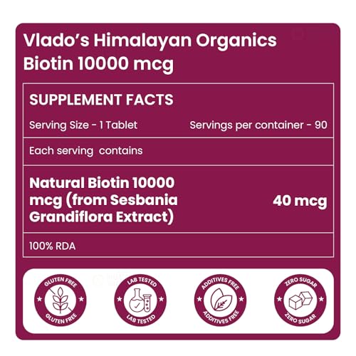 Vlado’s Himalayan Organics Biotin 10000 MCG tablets for Hair Growth, Radiant Skin and Stronger Nails I Sesbania Grandiflora Extract Biotin I Biotin Supplement for men & Women - 90 Veg Tablets