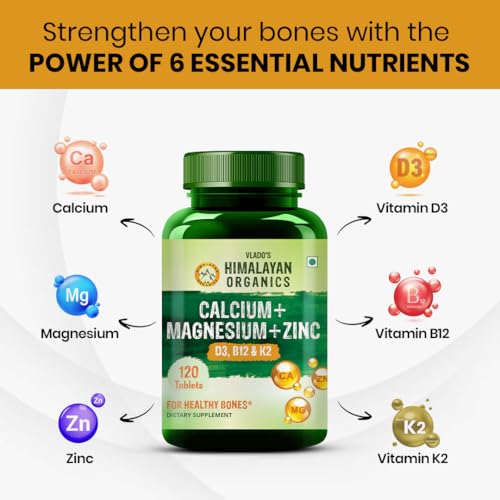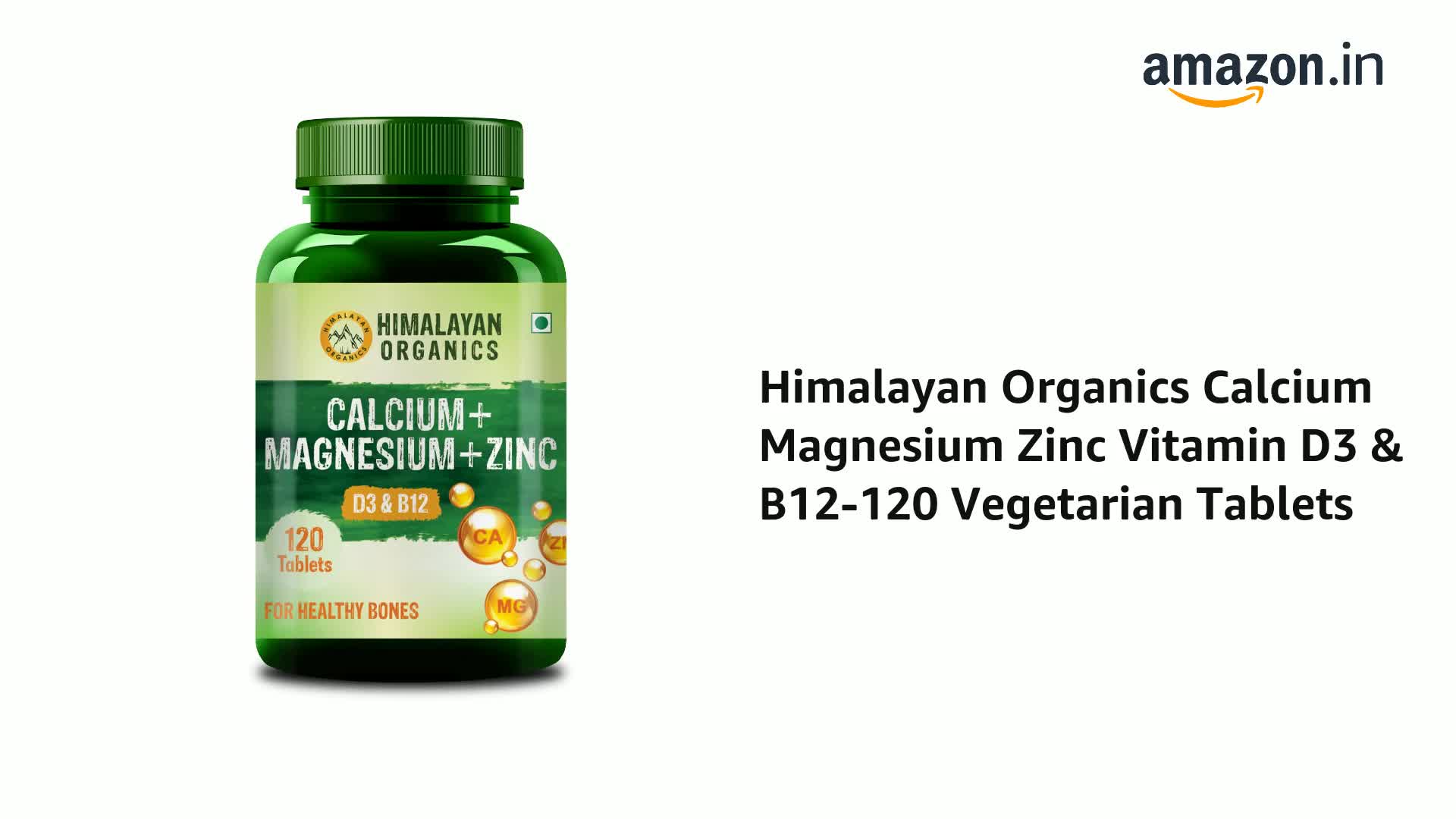 Himalayan Organics Calcium Magnesium Zinc Vitamin D3 & B12-120 Vegetarian Tablets