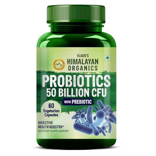 Vlado's Himalayan Organics Probiotics 50 Billion CFU - 20 Strain + 150mg Prebiotic Supplement | Good For Digestive, Gut health, Immunity, Diarrhea, Gas & Bloating Support| For Men And Women - 60 Vegetarian Capsules