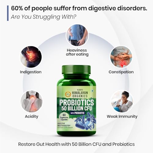 • WHOLESOME COMBINATION: HIMALAYAN ORganics Probiotics 50 Billion CFU Caps. are a wholesome combination of 50 billion CFU and 20 potent probiotic strains that ensure smooth functioning of your maintain integrity of the intestinal lining and for overall well