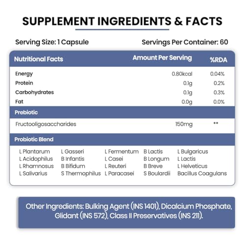 • PREBIOTICS & PROBIOTICS BLEND: Prebiotics and Probiotics are a perfect blend to ensure the smooth working of your . These Caps. have an adequate balance of both that encourages a healthy balance of bacteria in your discourages infections supports proper a