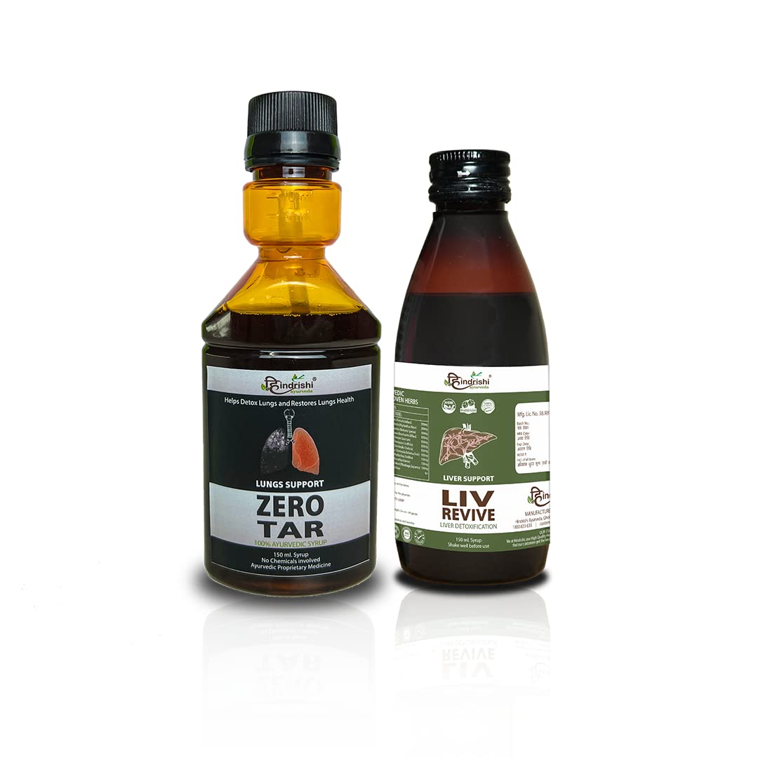 Hindrishi Ayurveda Zero Tar & Liv Revive Capsule Lungs and Liver Detox - Removes Tar from Lungs and Liver Due to Air Pollution & Smoke Liver Detox for Fatty Liver Indigestion and for Healthy Liver Function (1 Zero Tar + 1 Liv Revive)