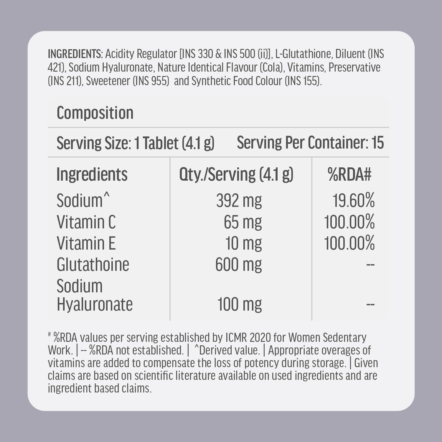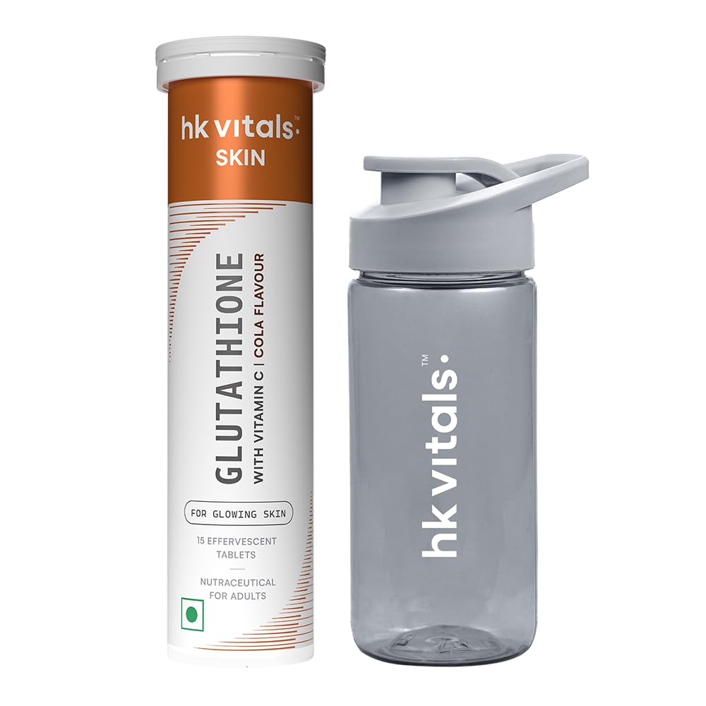 Introducing hk vitals Glutathione Effervescent fizzy tablets that deliver a powerful blend of 600mg L-Glutathione Vitamin C & E. L-Glutathione is a powerful antioxidant which along with Vitamin C & E helps reduce skin dullness and promotes skin glow. Glutathione also helps reduce pigmentation and dark spots by regulating melanin production. One glutathione tablet daily will help improve your skin glow & reduce pigmentation.