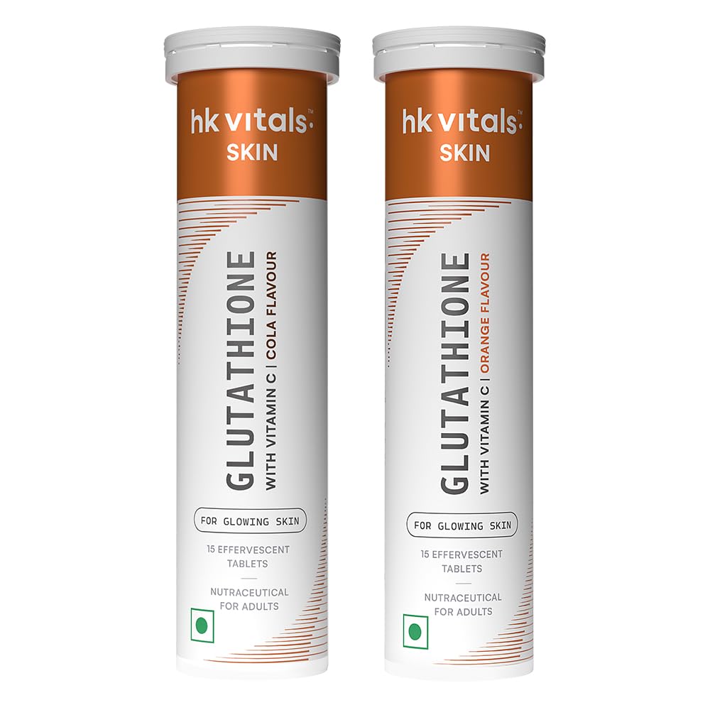 hk vitals Glutathione (Cola Orange 15 Effervescent Tablets) | L-Glutathione Tablets with Vitamin C & E | For Skin Glow & Hydration (Pack of 2)