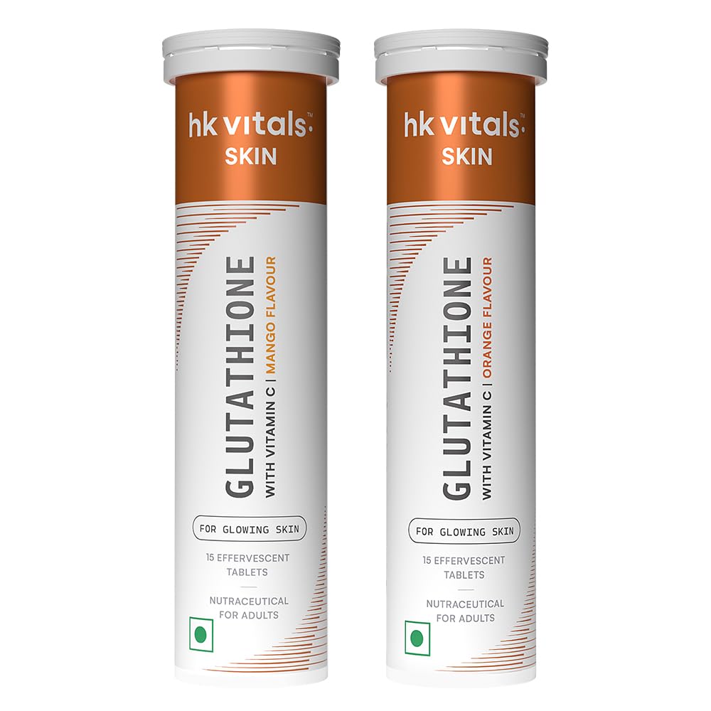 Introducing hk vitals Glutathione Effervescent fizzy tablets that deliver a powerful blend of 600mg L-Glutathione Vitamin C & E. L-Glutathione is a powerful antioxidant which along with Vitamin C & E helps reduce skin dullness and promotes skin glow. Glutathione also helps reduce pigmentation and dark spots by regulating melanin production. One glutathione tablet daily will help improve your skin glow & reduce pigmentation.