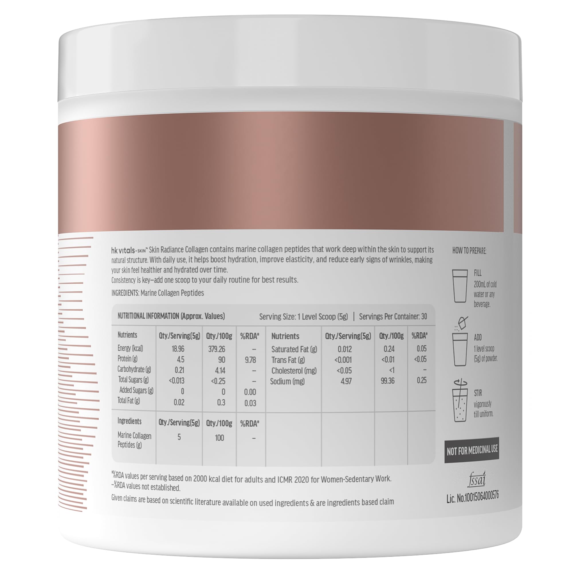 hk vitals Skin Radiance Marine Collagen Supplement Powder (Unflavoured 150g) | Collagen Peptides with Vitamin C E