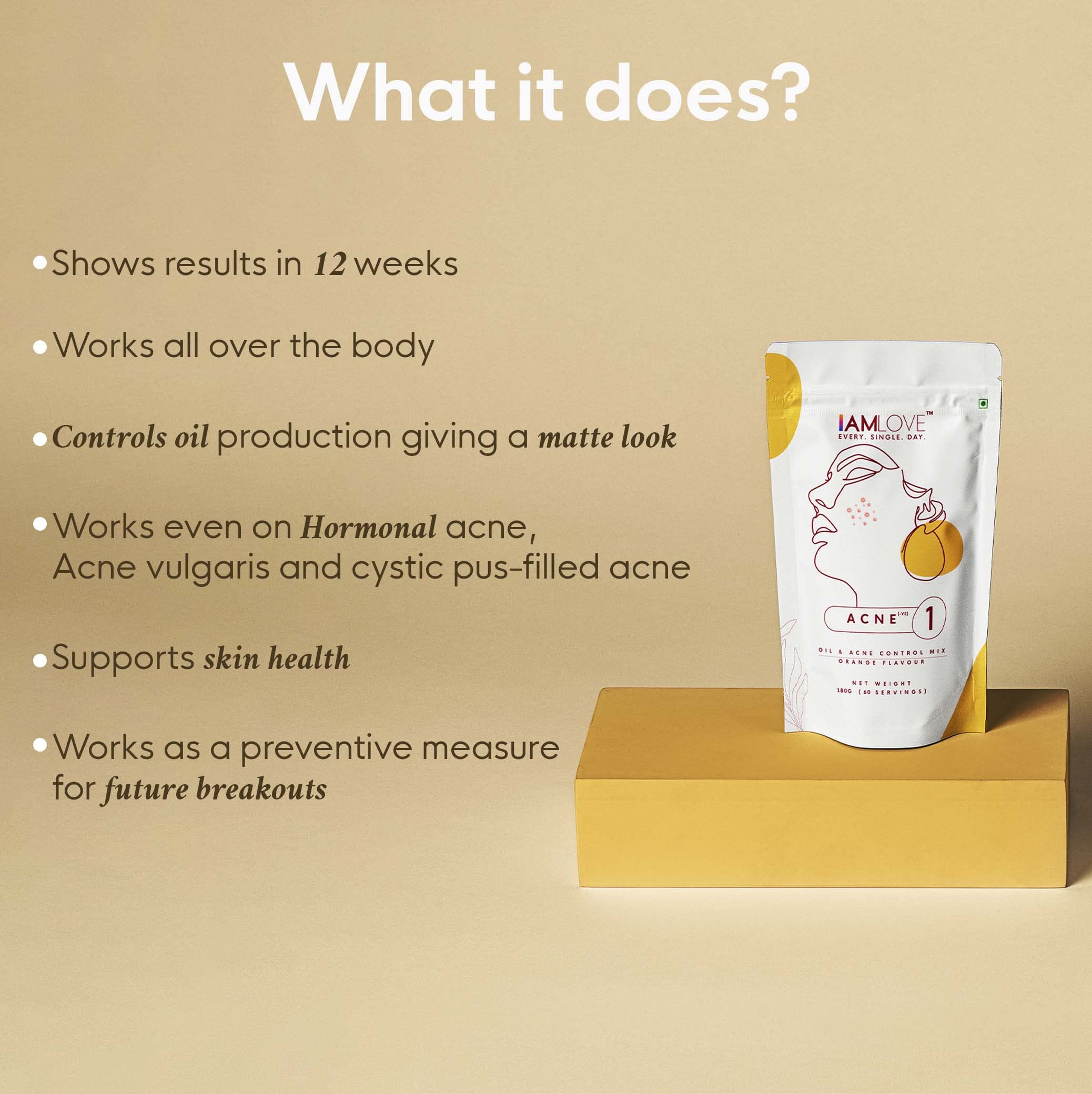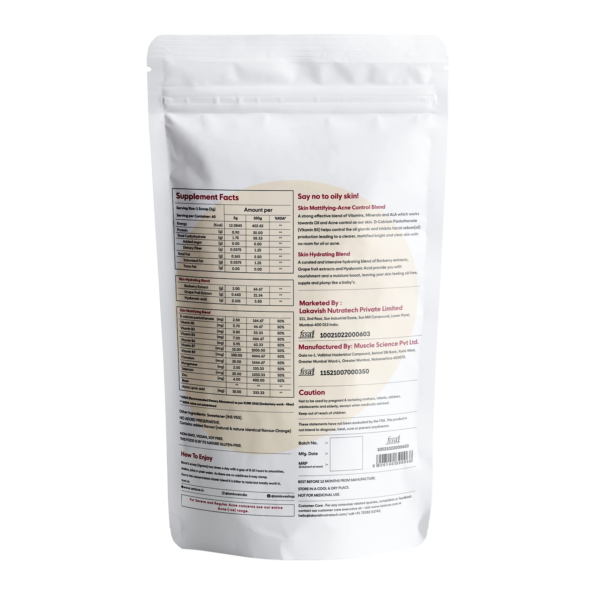 I AM LOVE Acne Negative Supplement Powder - 180g For Men And Women | Reduce Excess Oil Mild to Moderate Acne Pimples & Open Pores | Plant-Based Skin Supplement with B Complex Vitamins Zinc Chromium