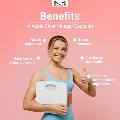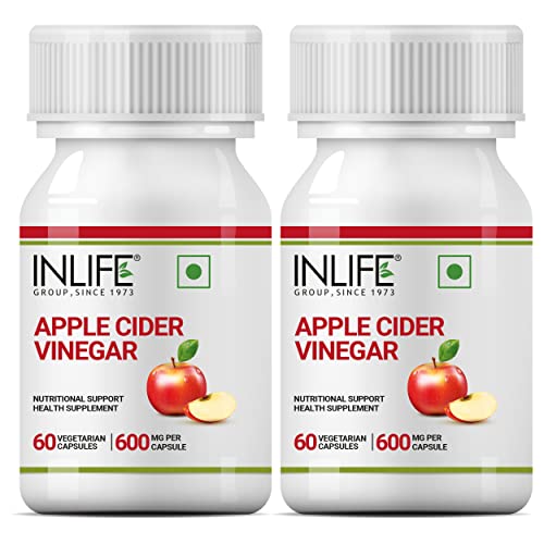 Inlife Apple Cider Vinegar is packed with 600mg per capsule of all natural vegan friendly Apple Cider Vinegar capsules. Our best quality apple cider vinegar pills are formulated to promote healthy lifestyle changes and health benefits such as circulation balanced PH levels healthy digestion and overall wellbeing. Our Apple Cider Vinegar ACV Supplement can aid in maintaining a healthy weight help maintain healthy cholesterol levels act as an appetite suppressant while promoting a healthy metabolism helping you burn more fat and calories. Being an incredible superfood for centuries Apple Cider Vinegar Capsules work as a natural detox support healthy metabolism and work to promote healthy digestion. Apple cider vinegar promotes improved bodily functions & overall health cleansing your body & keeps you feeling refreshed! Apple cider vinegarâs unique acid profile can help detoxify your liver by binding to harmful toxins which helps eliminate them from your body and prevents them from spreading. Similarly apple cider vinegar can be beneficial for colon cleanses bloating relief and overall immune system health. Apple Cider Vinegar is a vegetarian naturally sourced supplement that's been used to support healthy lifestyles for generations. Plant & herbal based supplements from Inlife Healthcare meet high quality standards & testing. Our product contains the most natural and effective formulation of trusted natural ingredients that are carefully processed and manufactured in a GMP certified manufacturing facility so you can be sure that you are safe. Vegan and vegetarian friendly Inlife Apple Cider Vinegar capsules are produced in gluten-free capsules.
