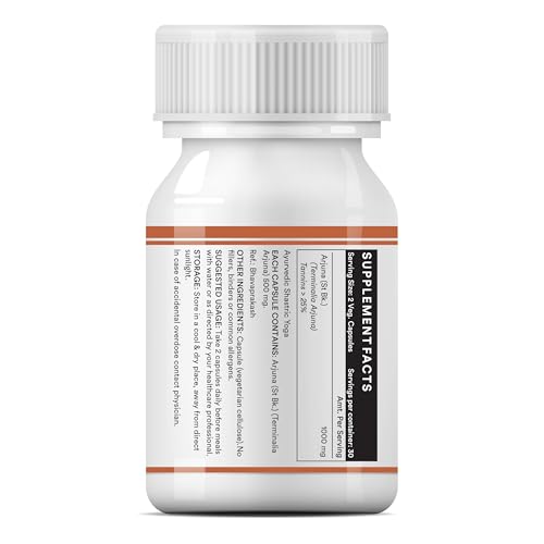 Ayurveda is a branch of traditional medicine that has its origin in India and its history is almost 5000 years old. Being 100% natural Ayurvedic products these supplements are based on the principle of self-healing. Ayurveda adopts a holistic approach that not only heals the body but relaxes the mind as well. Arjuna scientifically known as terminalia arjuna is a deciduous tree belonging to the Terminalia family. It is native to south and central India and grows in the form of thick canopies near dry river beds. The bark of arjuna has immense medicinal value and has been used for ages in ayurvedic medicine for healthy heart. The primary constituents of arjuna extract include sitosterol ellagic acid and arjunic acid along with Coenzyme Q10 that help in strengthening heart muscles. Arjuna helps in improving overall heart health. The benefits of arjuna is not limited to heart only it is also a rich source of antioxidants such as glycosides flavonoids and tannins that help improve immunity. Arjuna is also known as a potent natural medicine for stress relief. It is natural ayurvedic product. Suggested Usage: Take 2 capsules daily before meals or as directed by a healthcare professional.