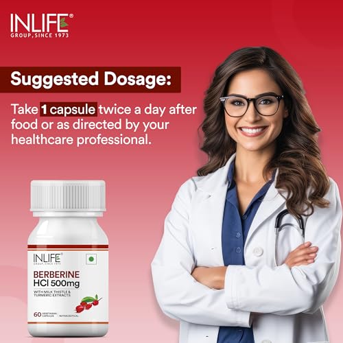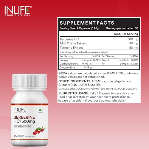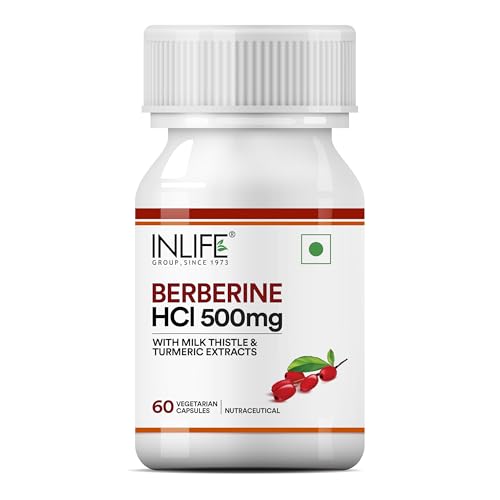 INLIFE Berberine HCL 500mg Supplements with Milk Thistle & Turmeric Extract Support for Men & Women - 60 Veg Capsules (Pack of 1, 60)