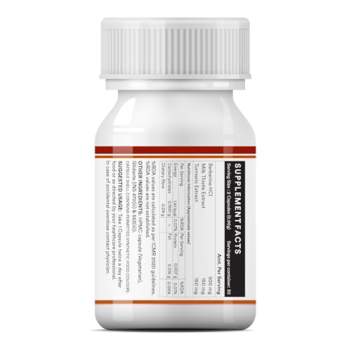 • Triple-Action Formula: Harness the power of Berberine HCl 500 mg Milk Thistle (150mg) and Turmeric (150mg) in one capsule for comprehensive health support.