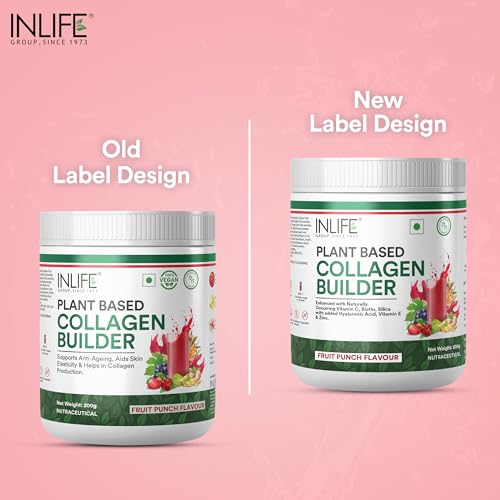 INLIFE Collagen Builder Supplements For Women and Men | Plant Based Collagen Powder for Skin & Hair with Biotin from Sesbania, Vitamin C, Silica, Hyaluronic Acid, Vitamin E, 200g (Fruit Punch)