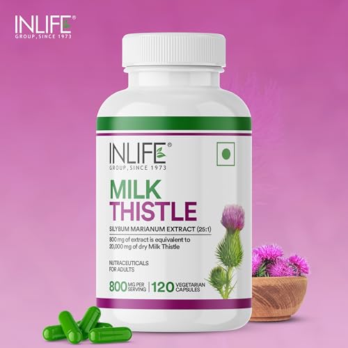 INLIFE Milk Thistle Extract 800mg | 80% Silymarin Liver Support Supplement - 120 Vegetarian Capsules