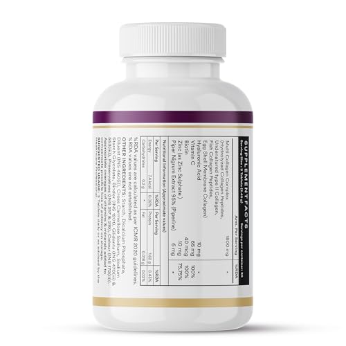 • Collagen Supplements: Enriched with Vitamin C Hyaluronic Acid Biotin Zinc and Piperine (Piper Nigrum Extract 95%) to support skin hair and joint health synergistically.