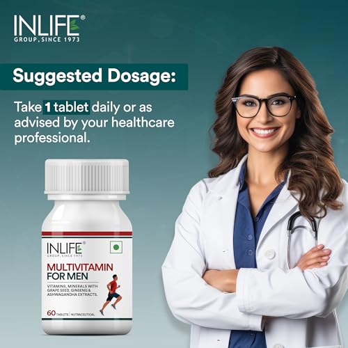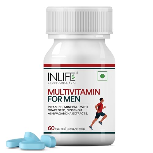 Inlife Multivitamin and Mineral Tablets for Men is a comprehensive dietary supplement designed to support menâs daily nutritional intake. This formula includes 13 essential vitamins 10 minerals and natural extracts like Ashwagandha Ginseng and Grape Seed to enhance your nutrient profile. The supplement contains essential vitamins such as Vitamin A Vitamin C Vitamin D Vitamin E Vitamin K and B Vitamins (B1 B2 B3 B5 B6 B7 B9 B12) along with minerals like Calcium Magnesium Zinc Selenium Copper Manganese Chromium Molybdenum Potassium and Iodine. Natural extracts like Ashwagandha Ginseng and Grape Seed Extract are also included to complement the overall formula. Manufactured in an FSSAI Ayush (Herbal/Ayurvedic) WHO-GMP ISO 22000:2005 certified facility each batch of Inlife supplements is produced under stringent GMP guidelines ensuring high standards of safety accuracy and quality. The supplement is designed to be taken daily with one tablet recommended per day with a meal or as directed by a healthcare professional. Featuring high-quality ingredients sourced and formulated for optimal results Inlife Multivitamin and Mineral Tablets offer a convenient way to meet the nutritional needs of men. A healthy diet and active lifestyle remain the foundations of overall health.