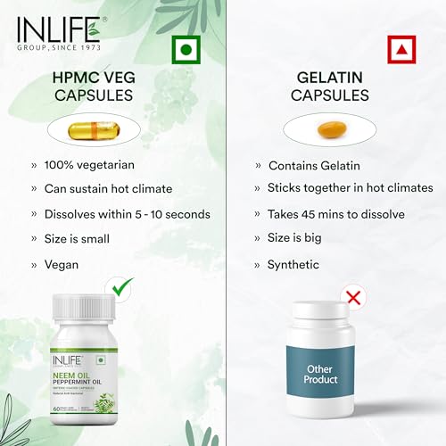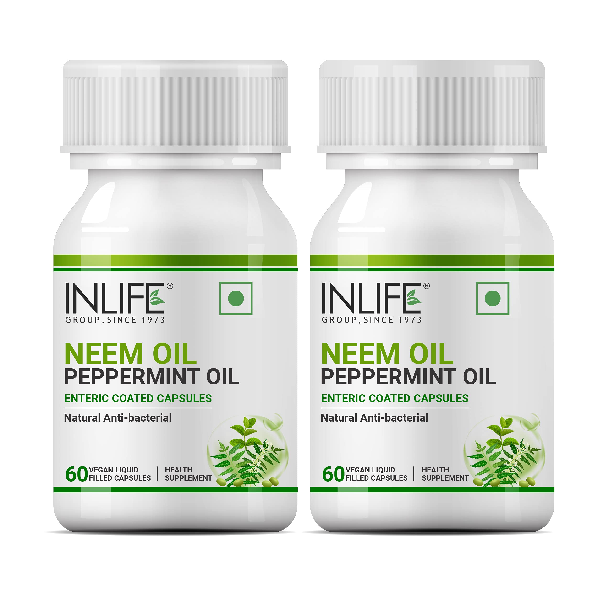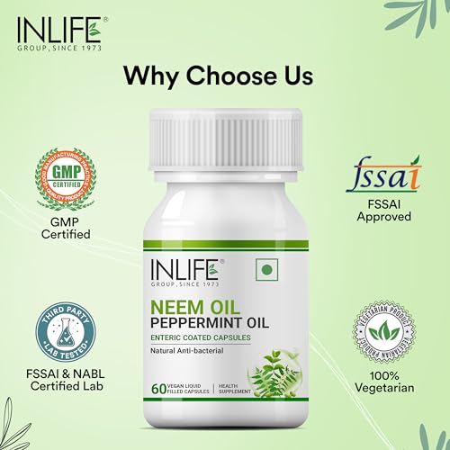 An excellent combination of two most powerful natural ingredients â Neem Oil and Peppermint Oil promotes healthy digestion. Neem oil is a potent antioxidant. It is rich in antioxidants which fight off free radical invaders that can damage cells. When take in combination of Peppermint oil helps support digestive health & helps in nausea. This product is being offered as enteric coated capsules for controlled release of oils in your body. Neem is an incredible gift from nature. It has undergone many clinical studies and provides a long list of benefits in the Ayurvedic tradition.