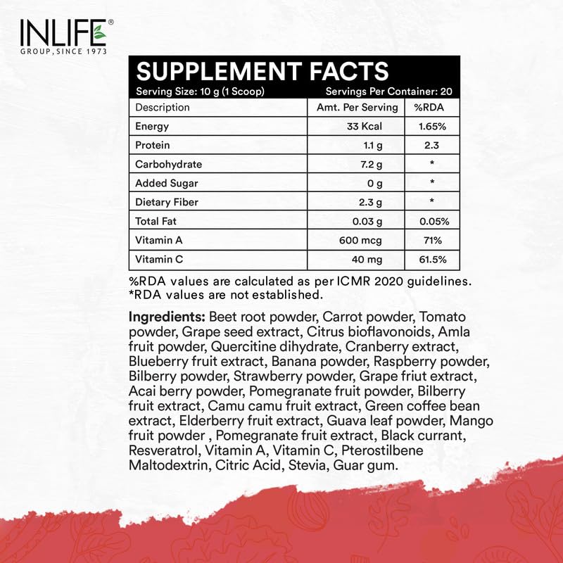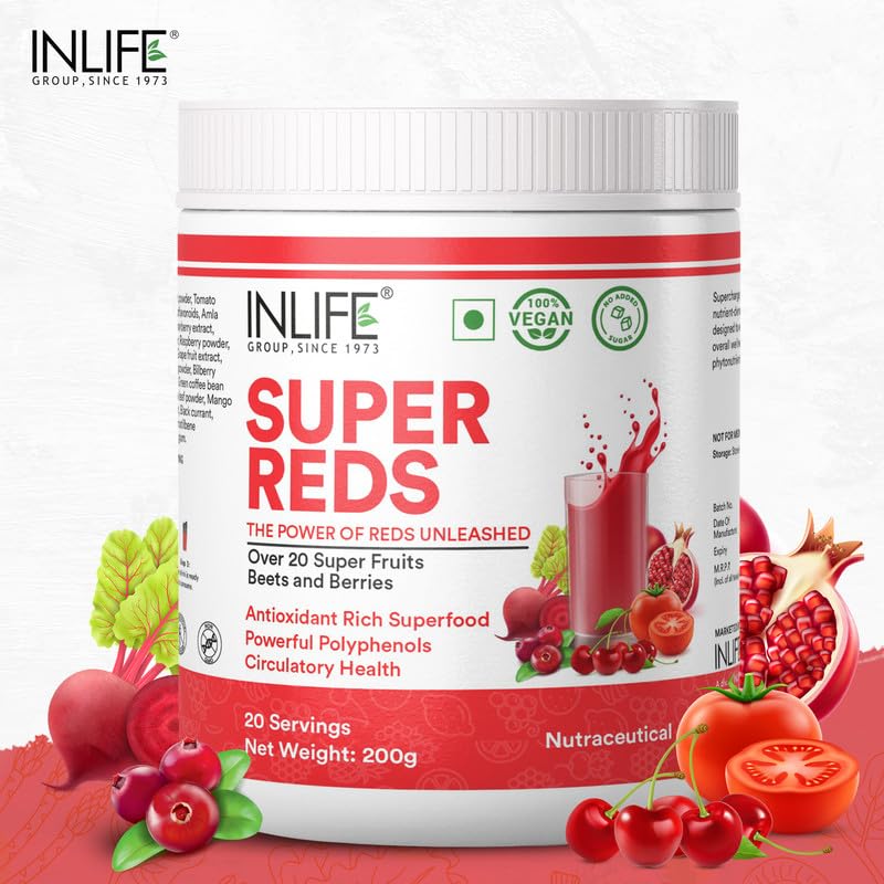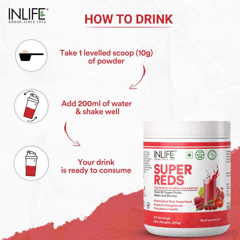 • What You'll Find in Every Bottle: INLIFE Super Reds comes in 200g bottle packing offering 20 servings of satisfaction. Each serving with its delightful Berry flavor is packed with over 20 antioxidant and polyphenol rich superfoods and berries.