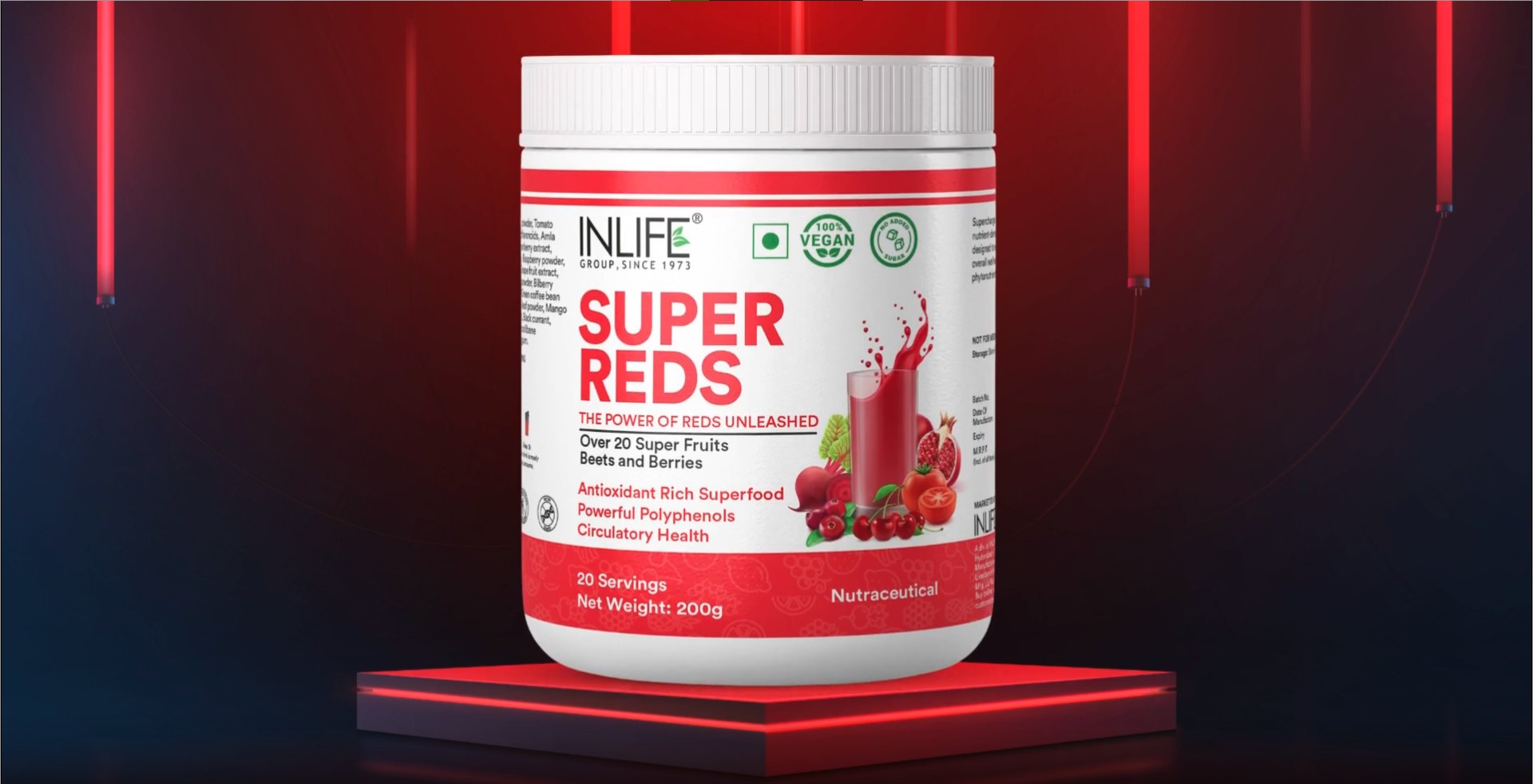 • Love the taste of fruits and veggies? Experience INLIFE’s Super Reds! When it comes to your fruit and vegetable intake there's no need to compromise. INLIFE Super Reds complements your healthy diet! A single serving of INLIFE Super Reds brings you 20 of