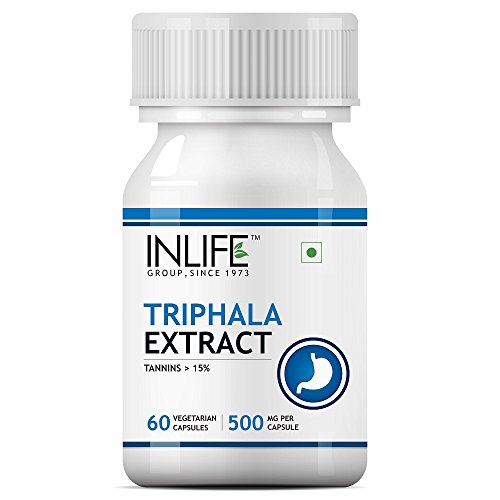 PURE TRIPHALA CAPSULES: It consists of three super fruits: Amalaki (Amla) Bibhitaki and Haritaki. INLIFE Triphala Extract Capsules contain safe natural ingredients and is manufactured to Quality standards. Each vegetarian capsule contains 500 mg pure Triphala extract standardized to 15% Tannins. Tannins are the best known active compound of Triphala and have been attributed with numerous health promoting properties linked to its antioxidant activity. NATURAL DIGESTIVE SUPPORT: Popular for its unique ability to gently cleanse and detoxify the system while simultaneously replenishing and nourishing it this traditional formula supports proper functions of the digestive circulatory respiratory and genitourinary systems. Triphala readily removes excess vata pitta and kapha from the body bringing balance and proper functioning to the system. ANTI-INFLAMMATORY ANTIOXIDANT DETOXIFICATION AGENT: Triphala enables the body to remove toxins and fat cells can control cholesterol levels and is revered as a mild yet powerful colon cleanser. Amla has shown to improve blood flow by promoting healthy nitric oxide levels. NATURAL CELANSER: Triphala tablets assist in natural internal cleansing. As a natural antioxidant triphala nourishes and rejuvenates the tissues. Made from the Quality triphala extract this traditional formula gently maintains regularity supports healthy digestion and promotes absorption. PURITY: Our product contains the most natural and effective formulation of trusted natural ingredients that are carefully processed and manufactured in a GMP certified manufacturing facility so you can be sure that you're safe. Vegan and vegetarian friendly-INLIFE Triphala extract vegetarian capsules is produced in gluten-free capsules and contains no artificial ingredients.