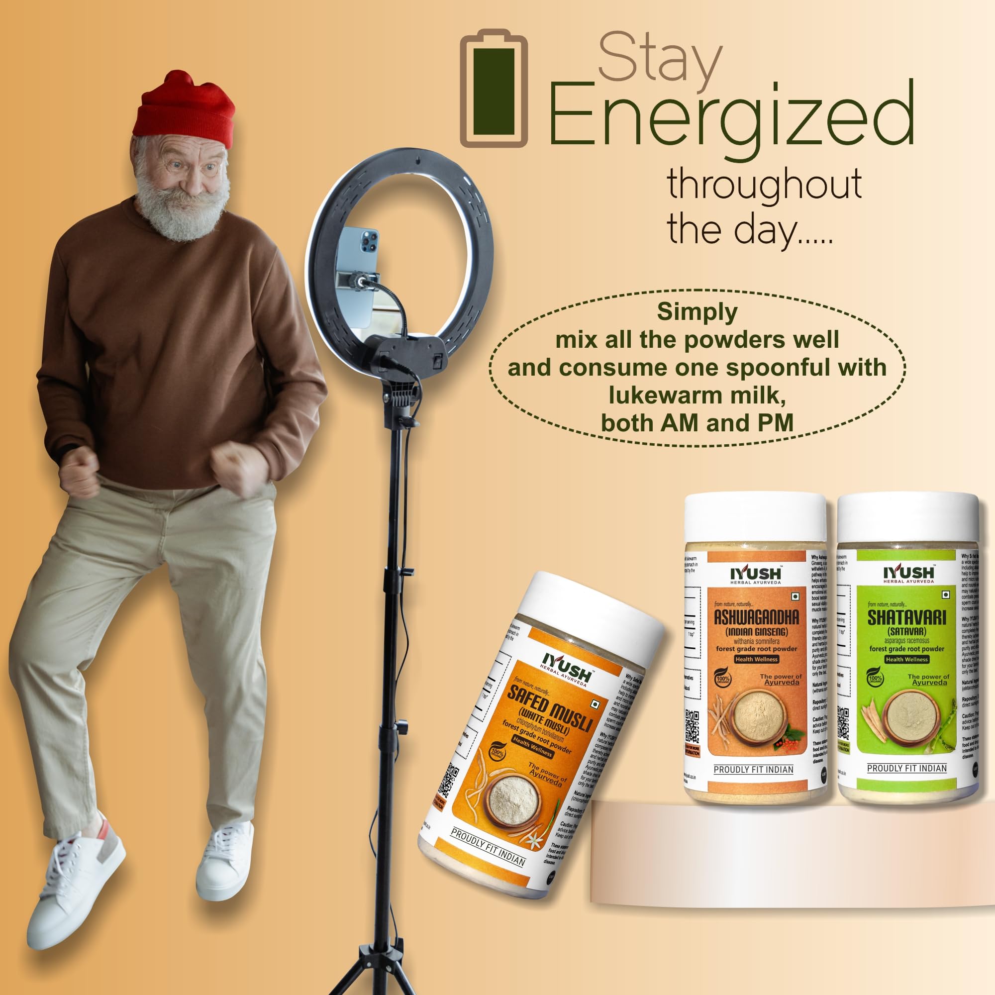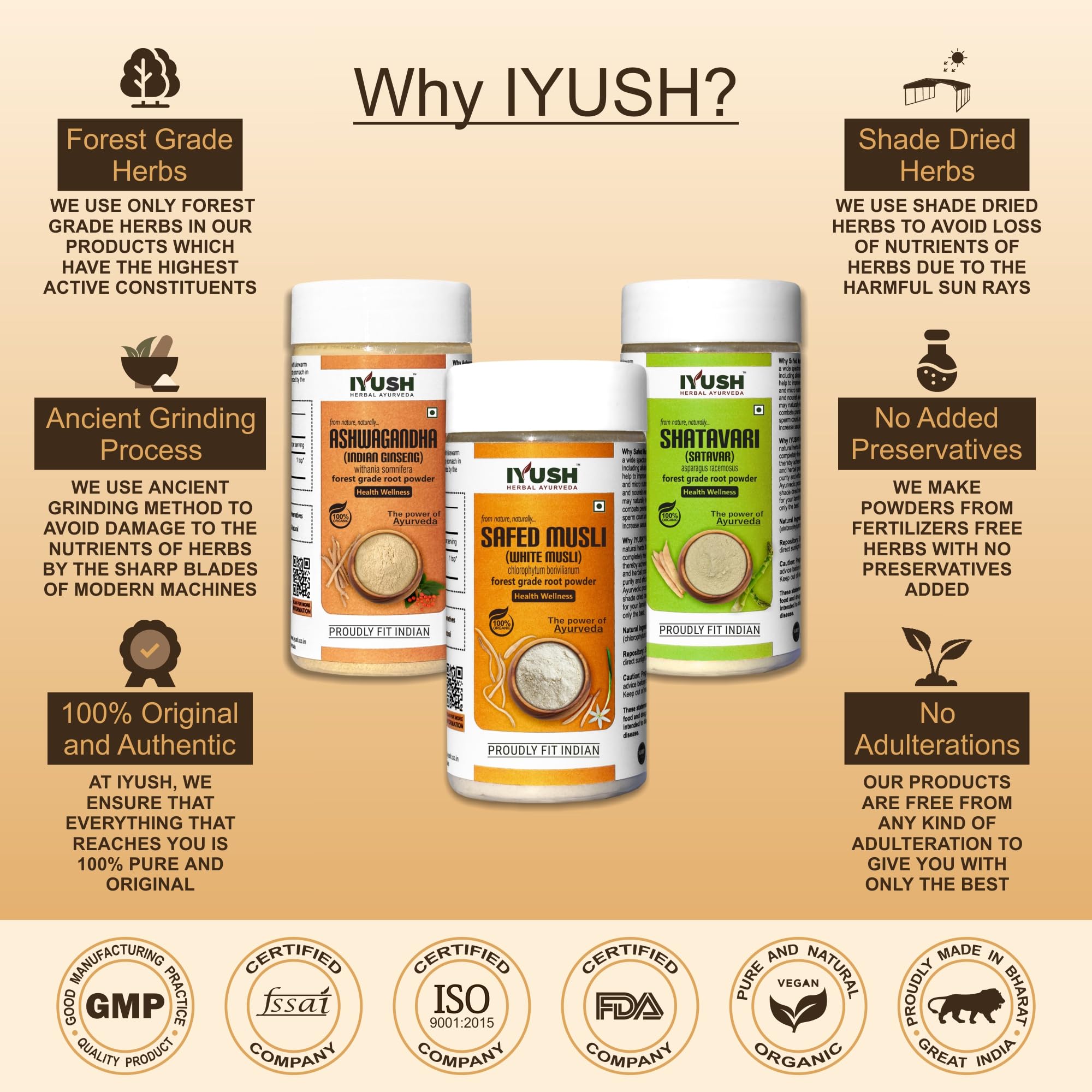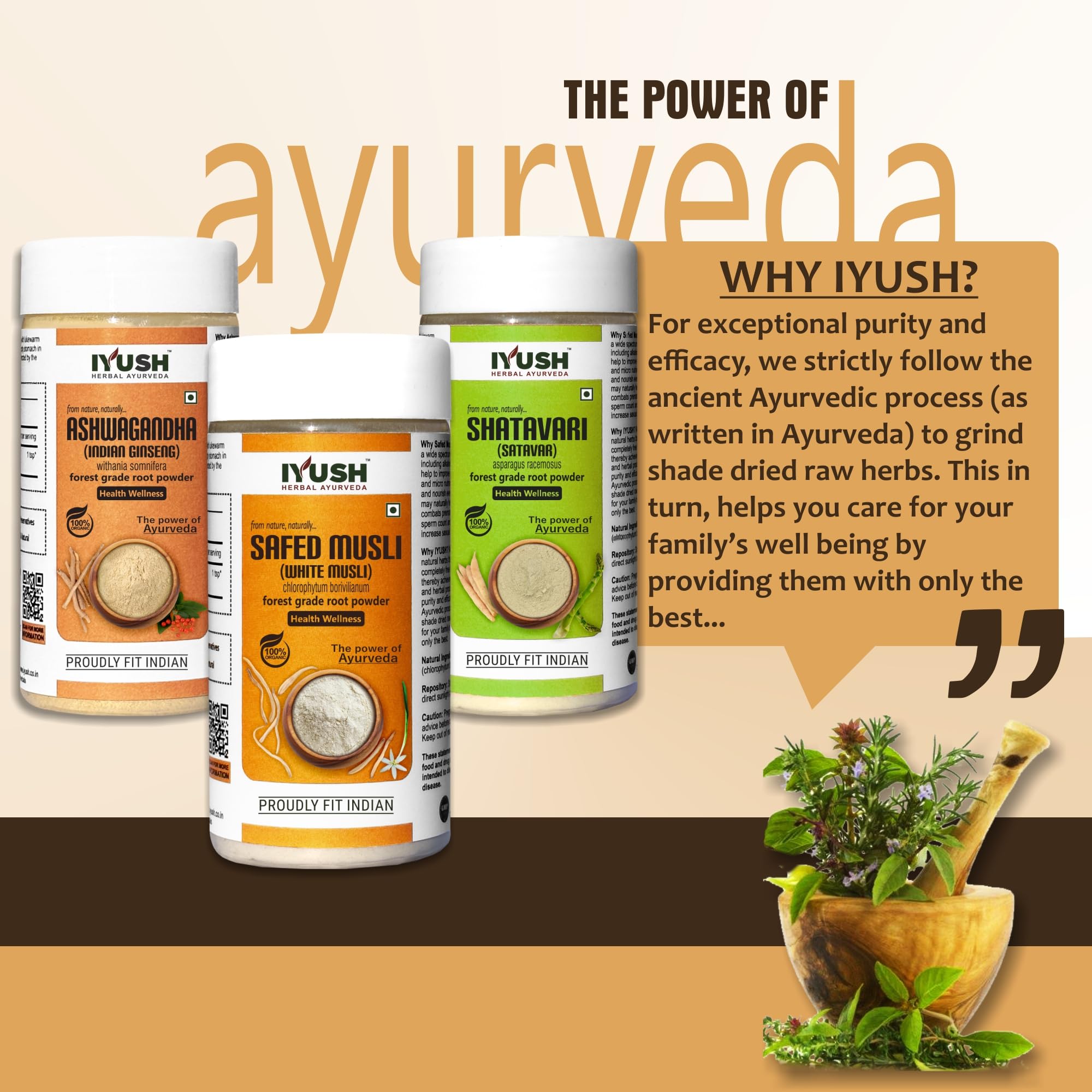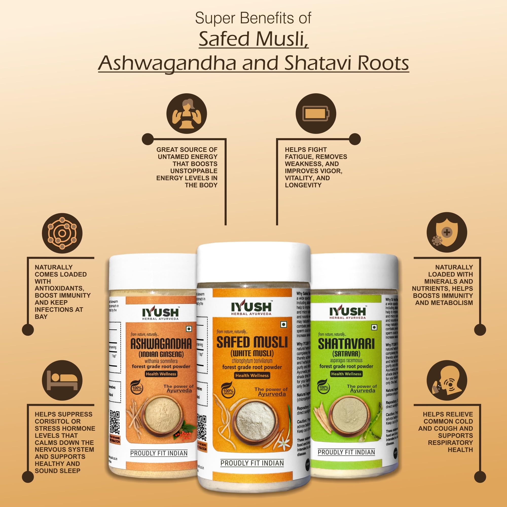 IYUSH Herbal Ayurveda Ashwagandha Shatavari Safed Musli Powder - 100gm each