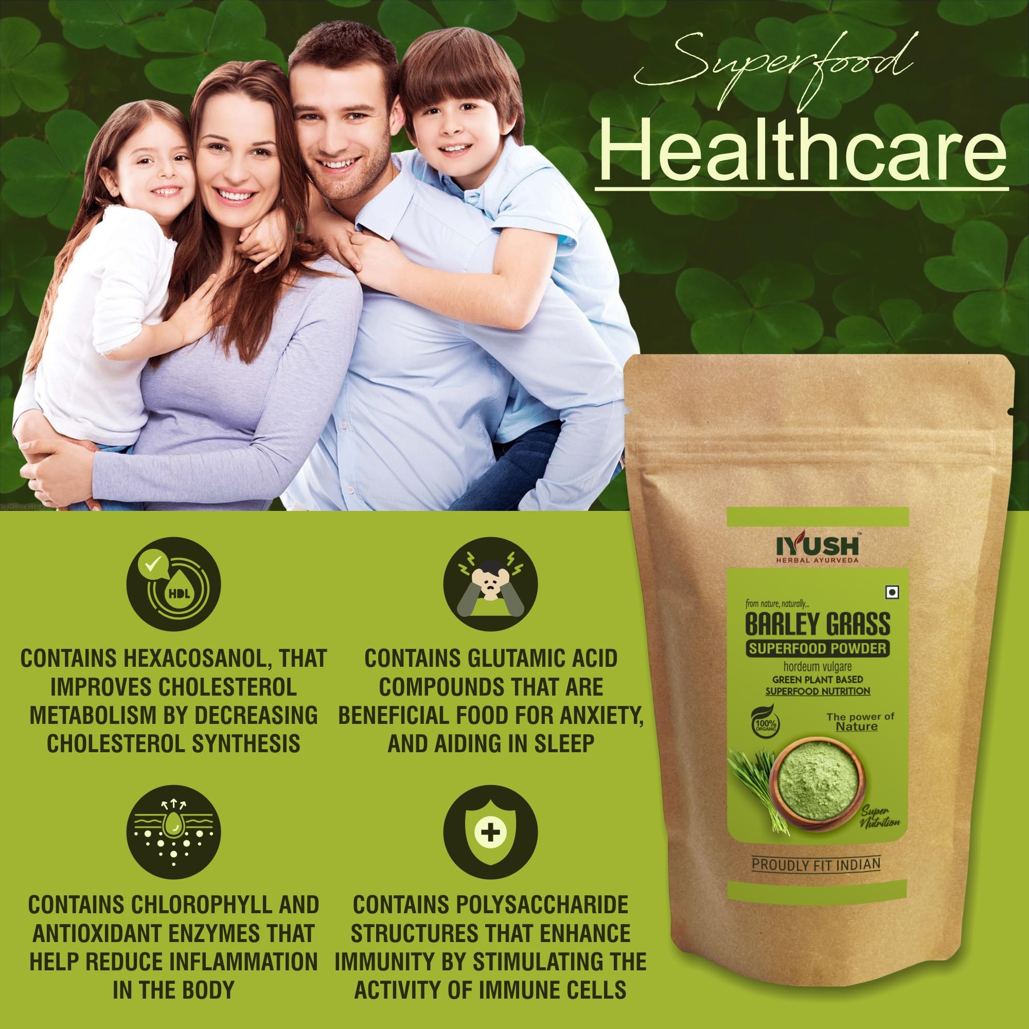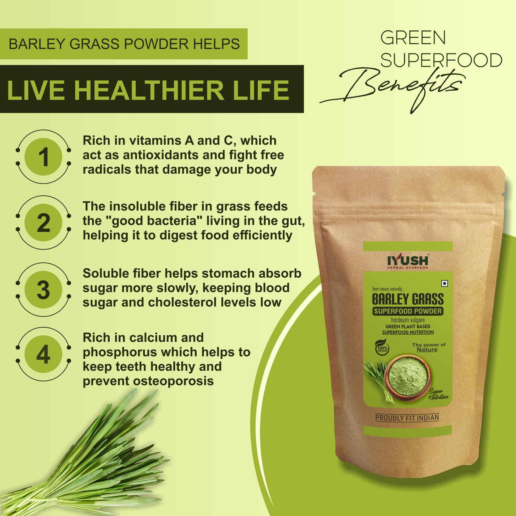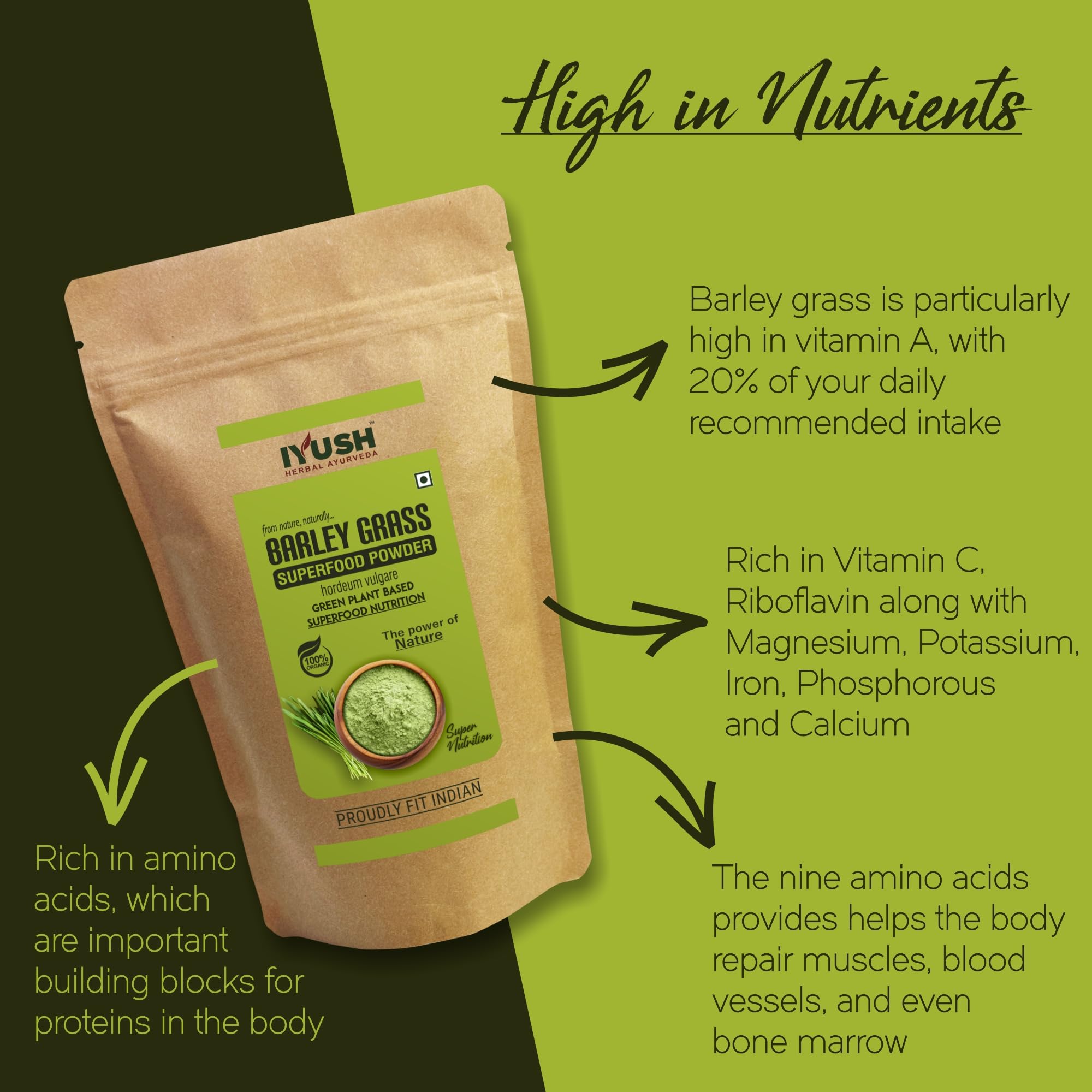 Barley also known as Hordeum vulgare is a natural herb that has been used for centuries to nourish the body with essential nutrients. It is an organic green superfood powder made from shade-dried wild forest grade Barley grass that contain the highest active nutrients which grow naturally on their own without any harmful chemicals or pesticides or fertilizers.
