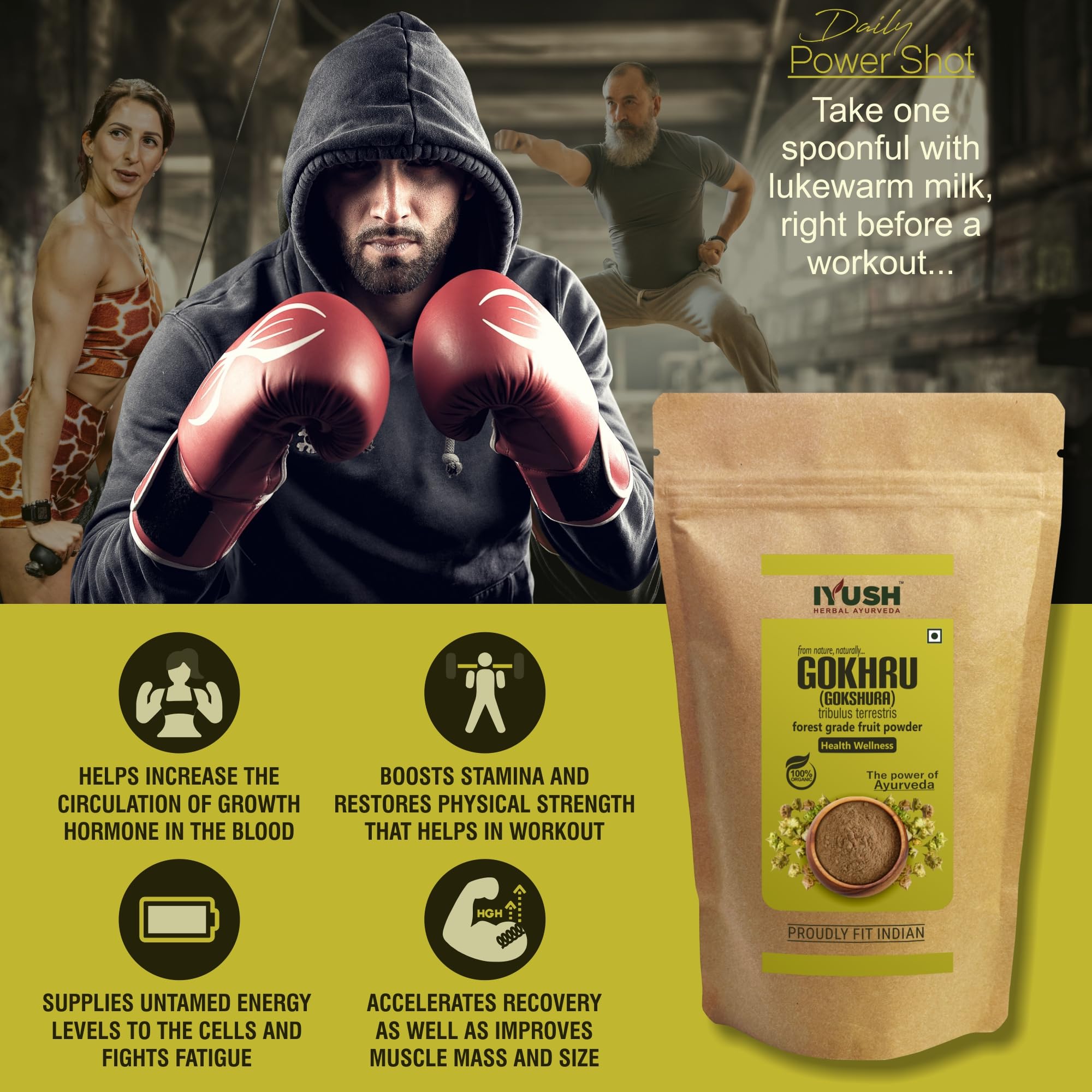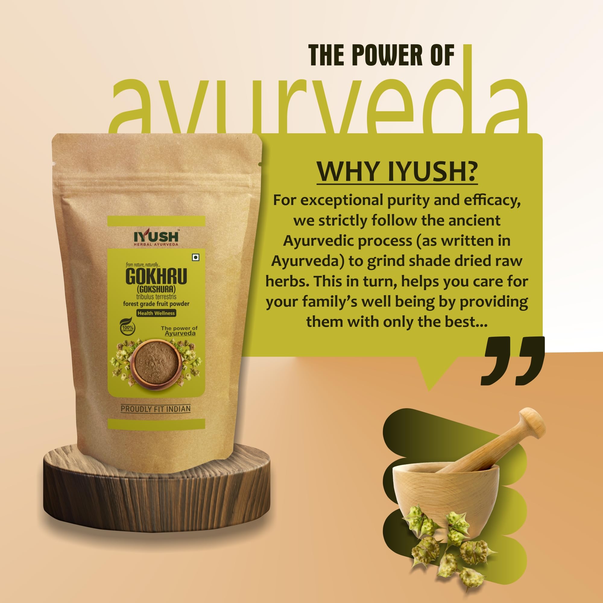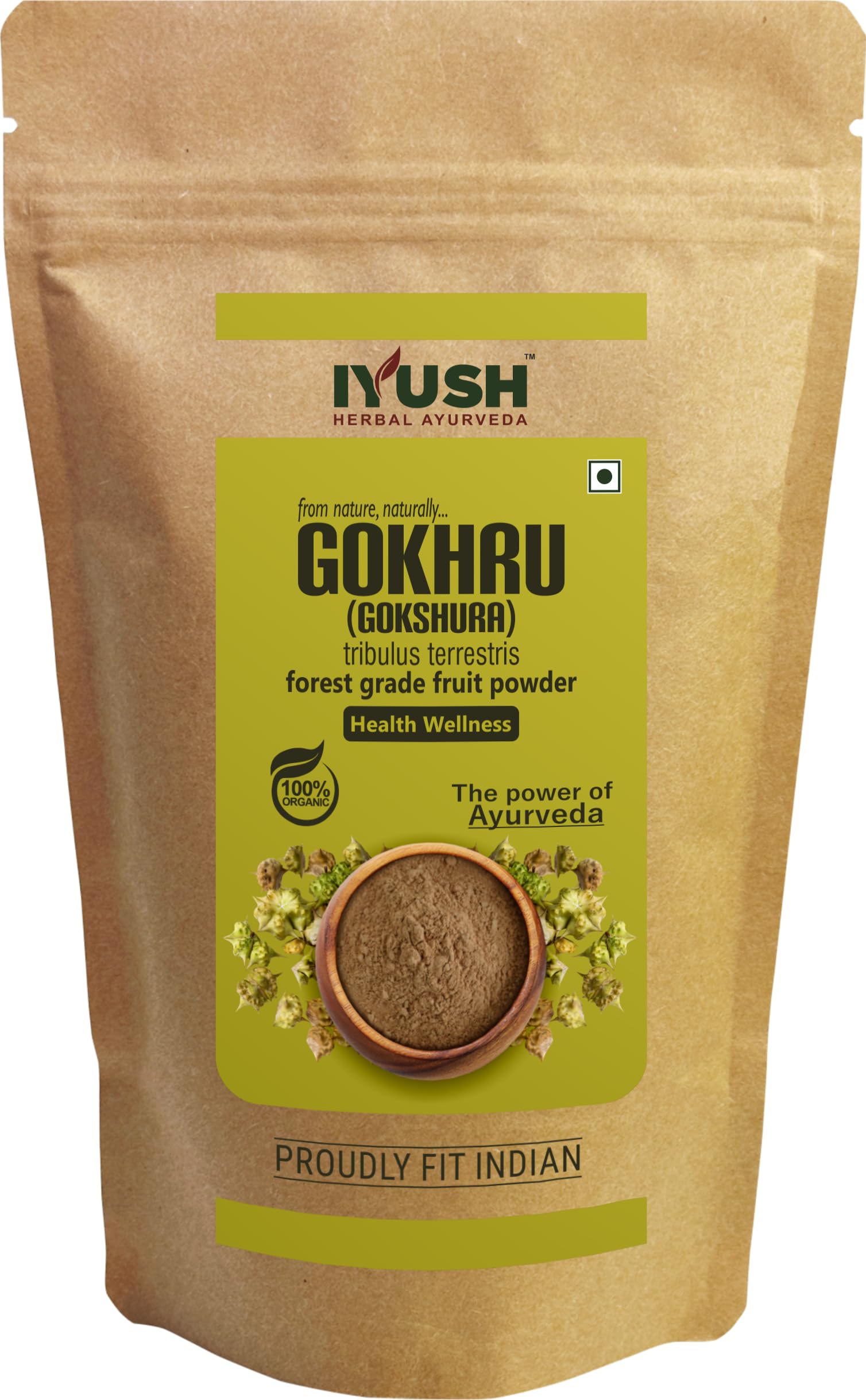 Gokhru or Gokshura also known as Tribulus terrestris is a natural herb that has been used in Ayurveda for centuries for numerous health benefits. It is an organic healthcare powder made from shade-dried wild forest grade Gokhru fruits that contain the highest active nutrients grown naturally without any harmful chemicals or pesticides or fertilizers.