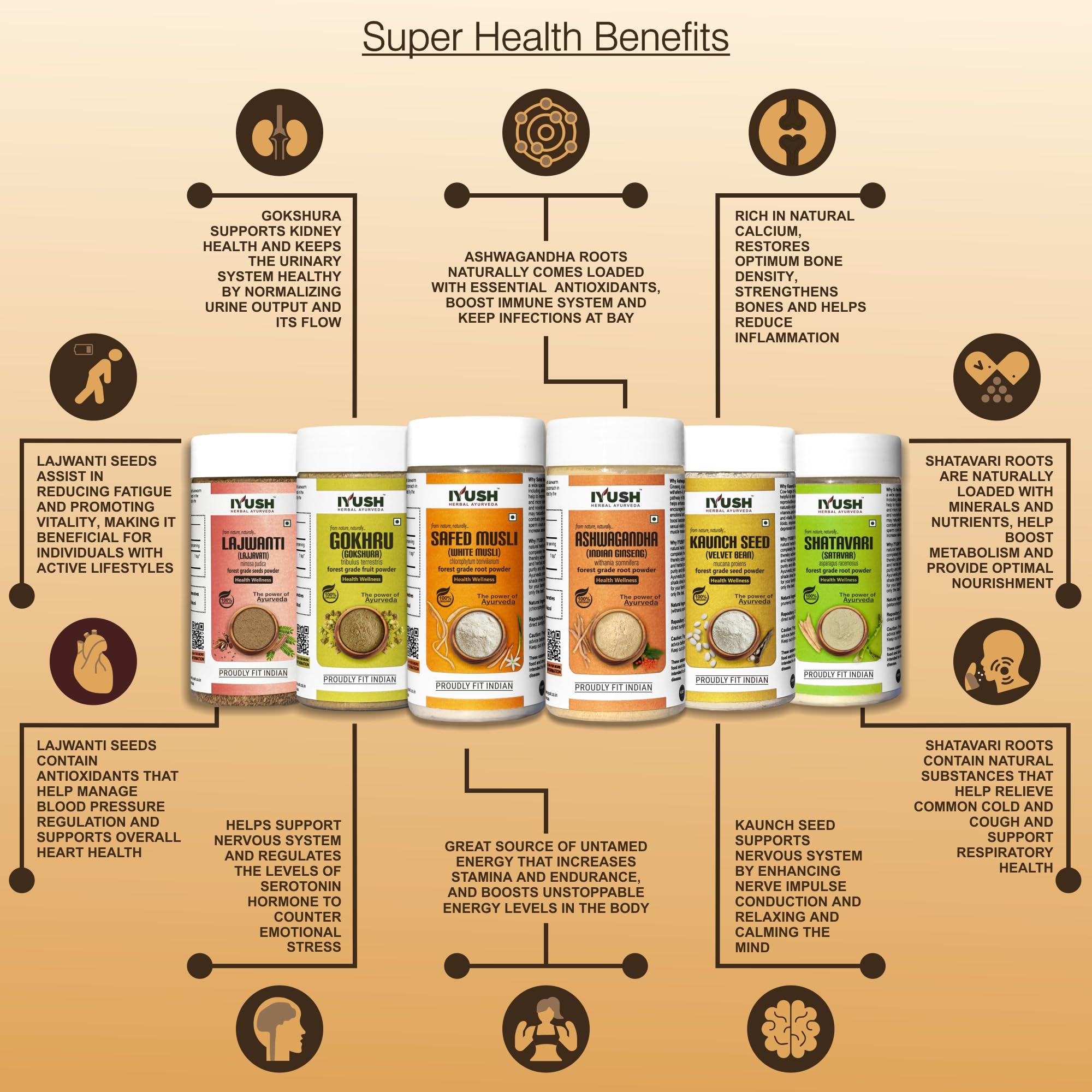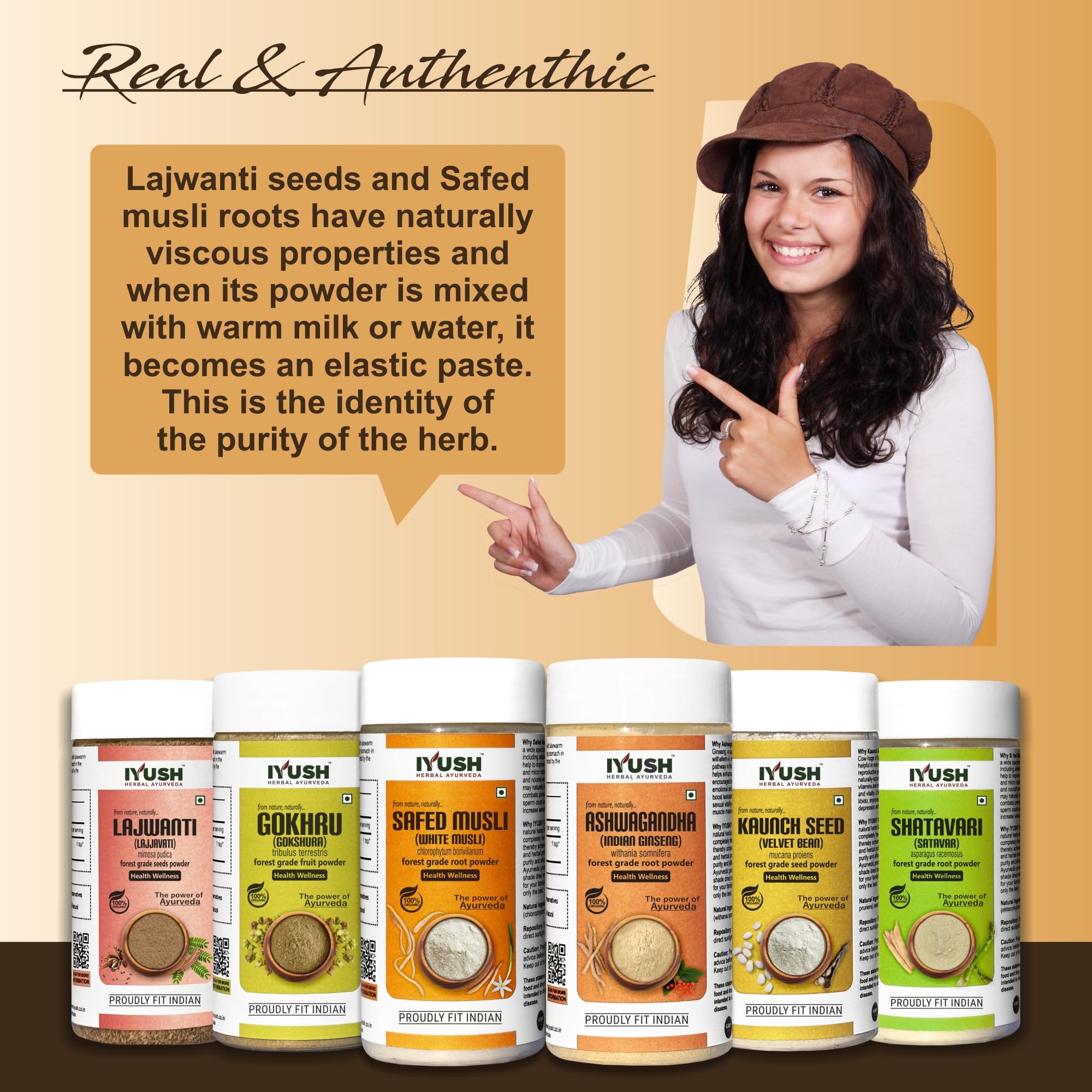 IYUSH Herbal Ayurveda Safed Musli Ashwagandha Kaunch Beej Shatavari Gokhru And Lajwanti Powder - (Total 600gm) 100gm each