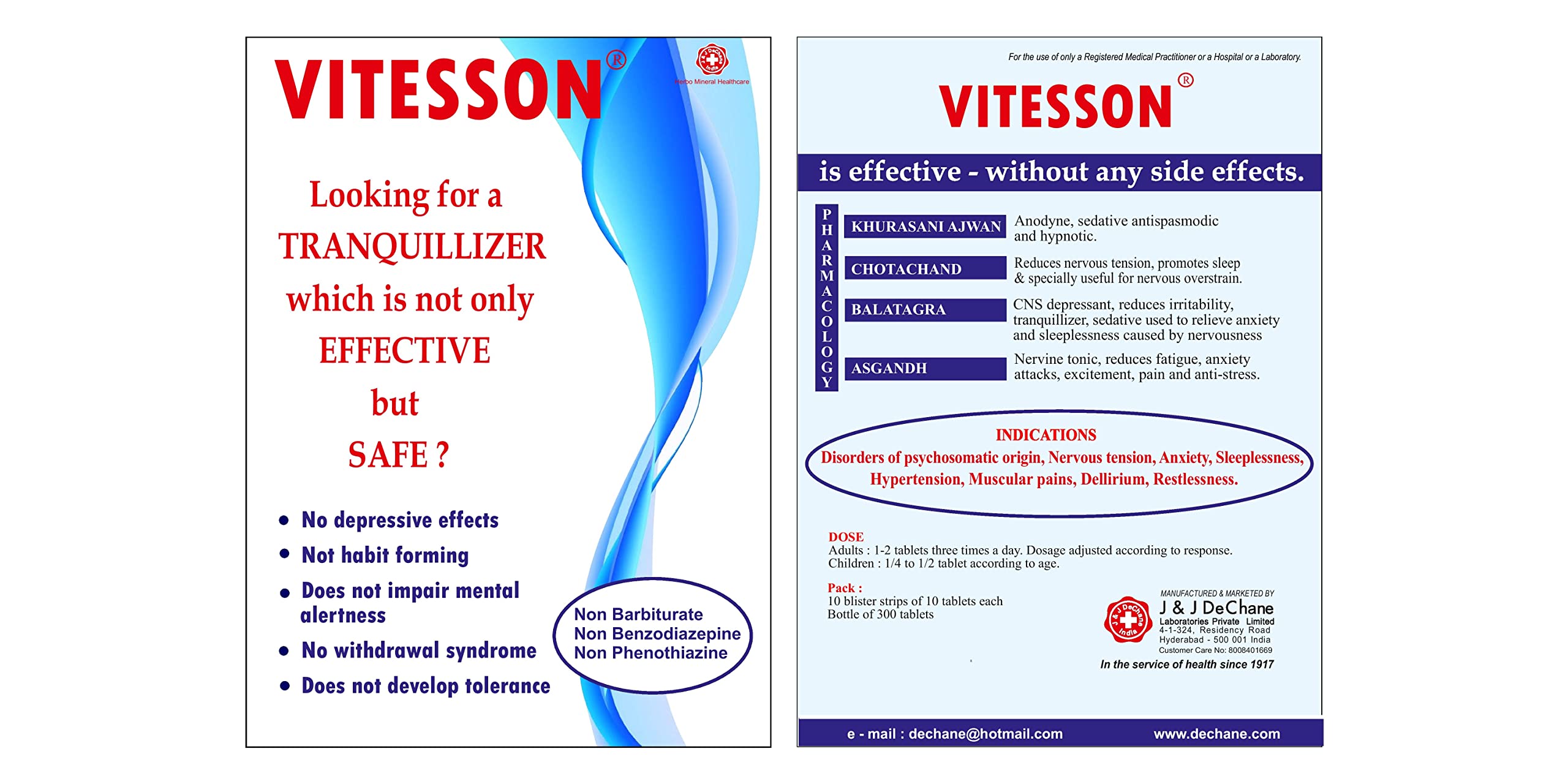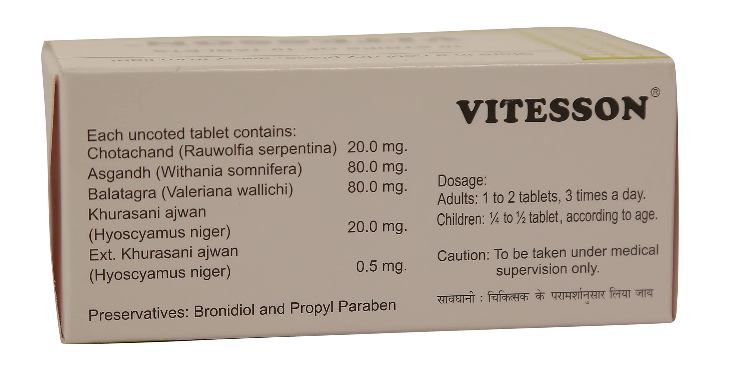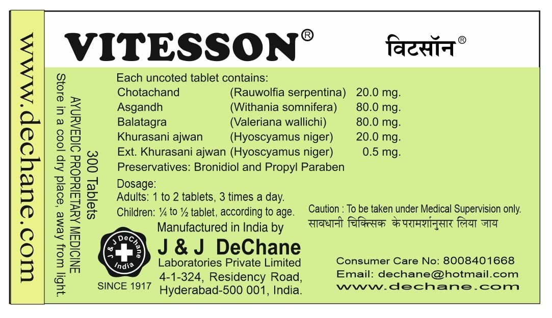 A combination of Ayurvedic herbs for the management of Hypertension Headache Sleeplessness Delirium Anxiety Attacks Nervous Tension and other Disorders of Psychosomatic origin. Non-habit forming. Tranquillizer without depressive effects.