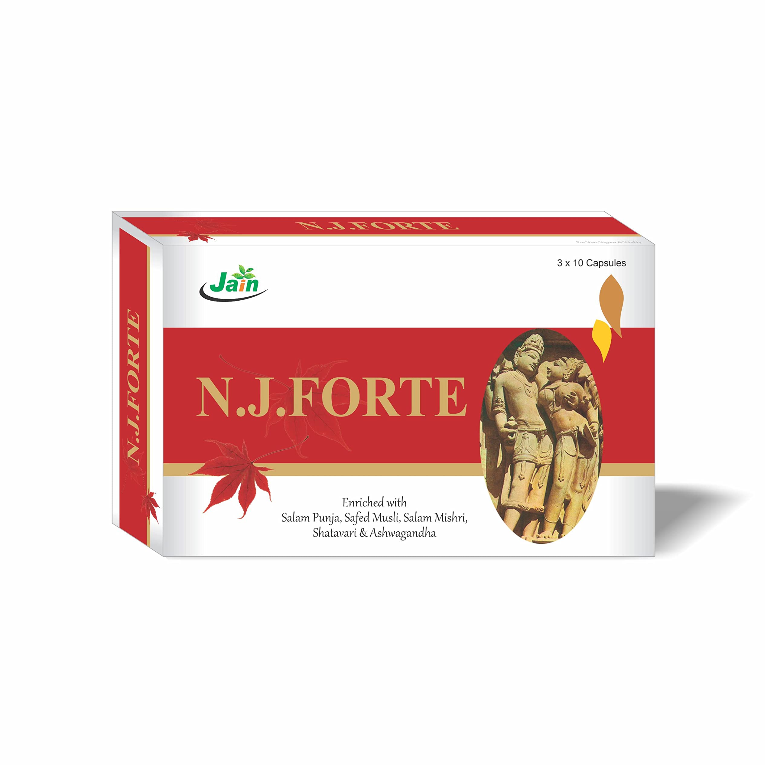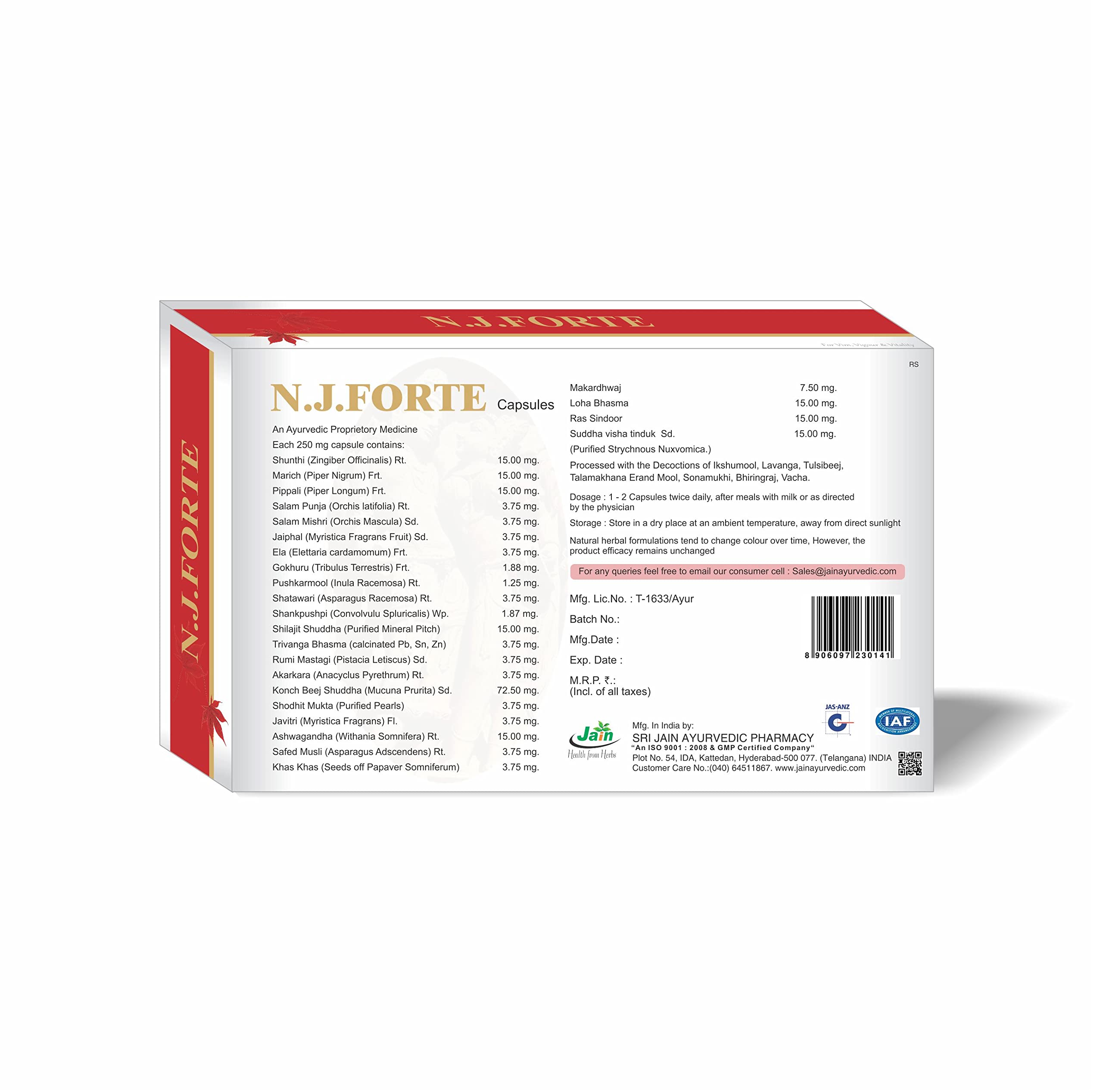 Jain N.J Forte Capsules 250 mg (with Shilajit Ashwagandha Safed Musli Mucuna Tribulus etc) for Stamina & Power - 30 Caps.