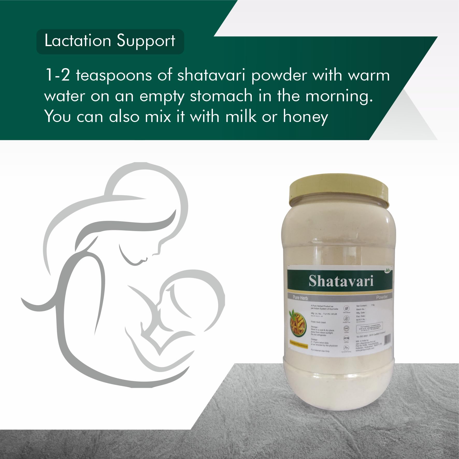 Jain Shatavari Powder 1kg 100% Pure Ayurvedic Supplement for Women Wellness