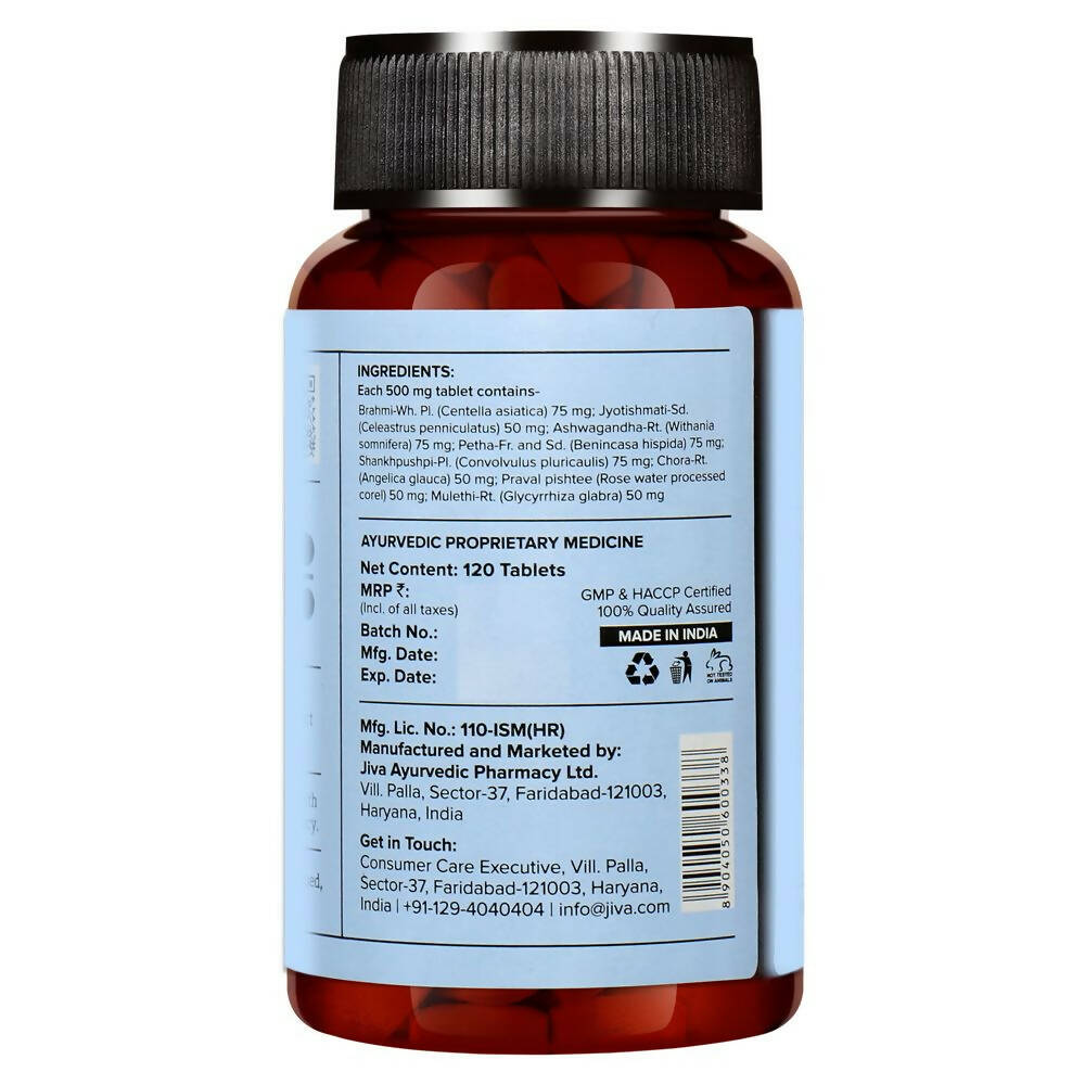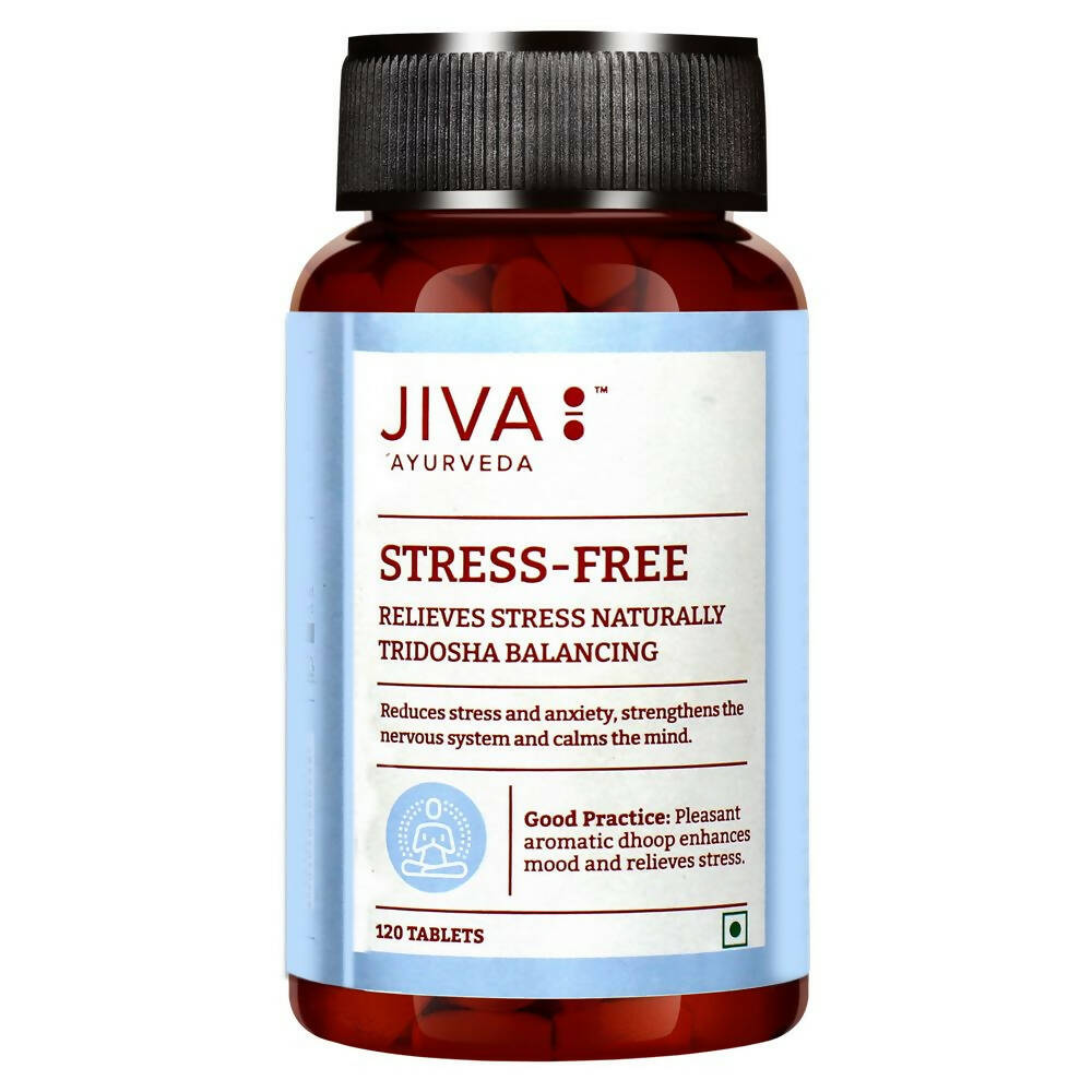 Jiva Ayurveda Stress-Free TabletsAbout the Product:The Jiva stress free tablet does just what the name suggests and aims at relieving symptoms of anxiety and stress. It is specially formulated to overcome the ill effects of stress while providing physical and mental health. This formulation of special herbs enables the body to reserve and sustain vital energy throughout the day while sound, restful sleep at night. All the herbs are collected, finely sorted.Legal Disclaimer: Statements regarding dietary supplements have not been evaluated by the FDA.Note: Product images are for illustrative purposes only. Images/packaging/ labels may vary from time to time due to changes made by the manufacturer's manufactur