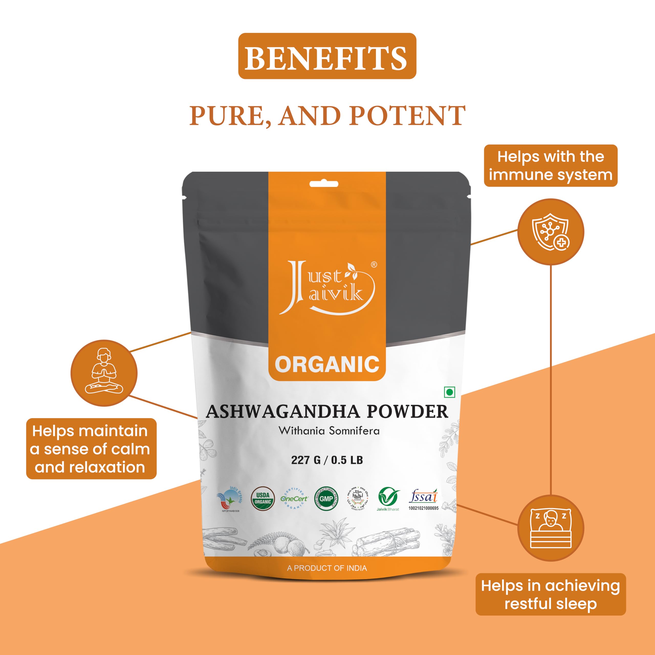Just Jaivik Organic Ashwagandha Powder- 227g For Stress Relief Energy Boost & Immunity | Withania somnifera Ashwagandha Podi Asvagandha Churna Asvagandha Indian ginseng