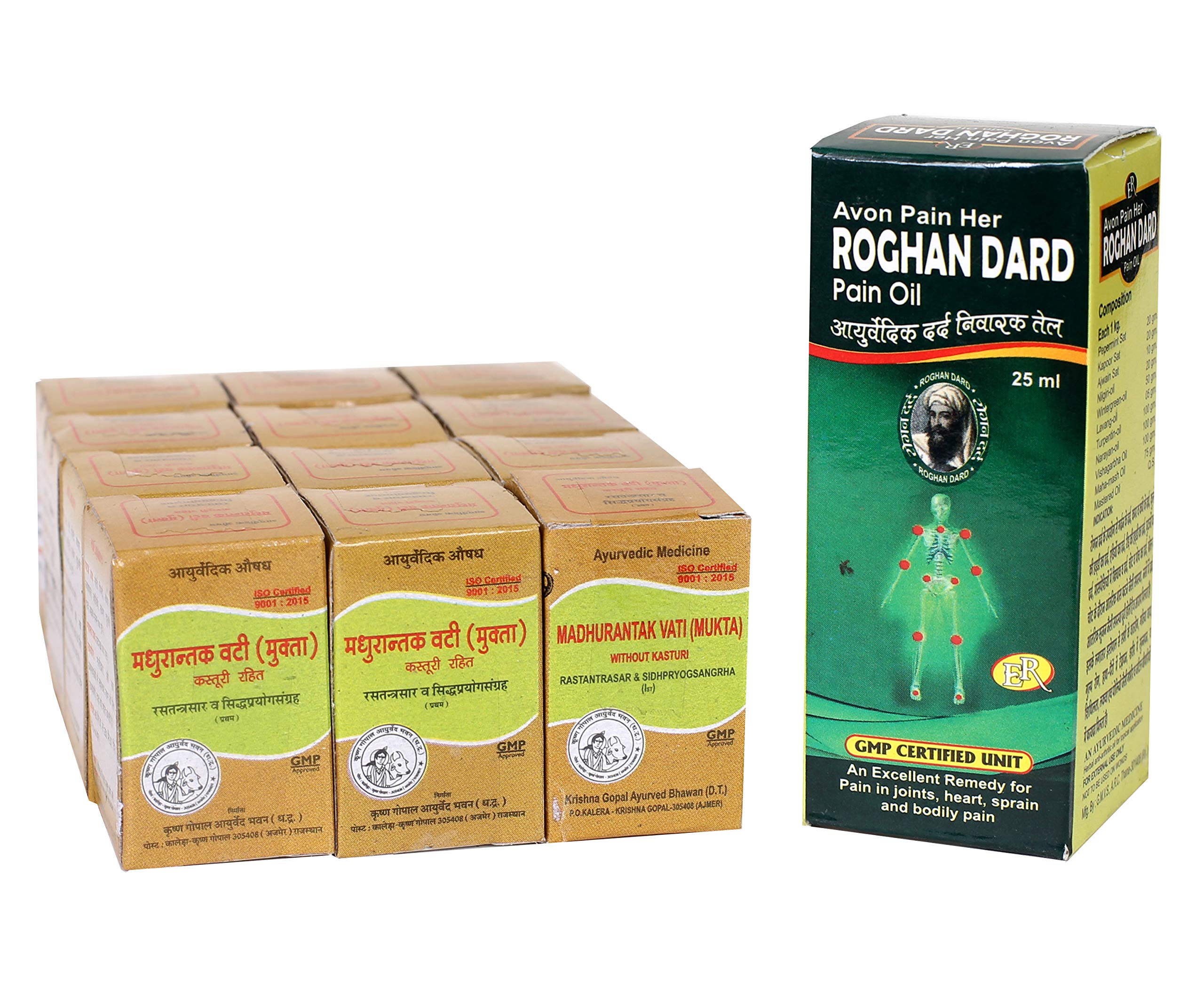 Kalera Madhurantak Vati 10 Tab Pack Of Tweleve(12) With Painher Roghan Dard oil