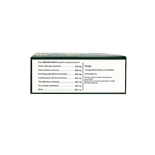 Quantity: 40 Nos; Item Form: Capsules Brahmi Pearls to be an excellent memory booster intelligence enhancer and rejuvenate herb as per Ayurveda scriptures. Brahmi pearls is a natural brain nourisher brain stimulant and memory tonic containing nutrients th