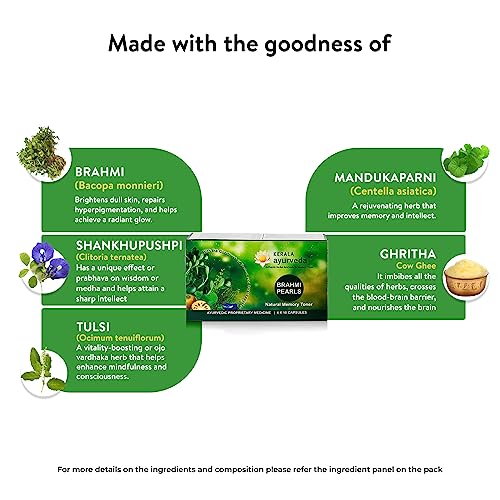 Boosts memory increases concentration and reduces stress and anxiety. Vacha promotes intellect reduces anxiety and strengthens the nervous system. Brahmi pearls stimulate memory and improve cognitive functions. Tulsi improves memory sleep immunity clarity