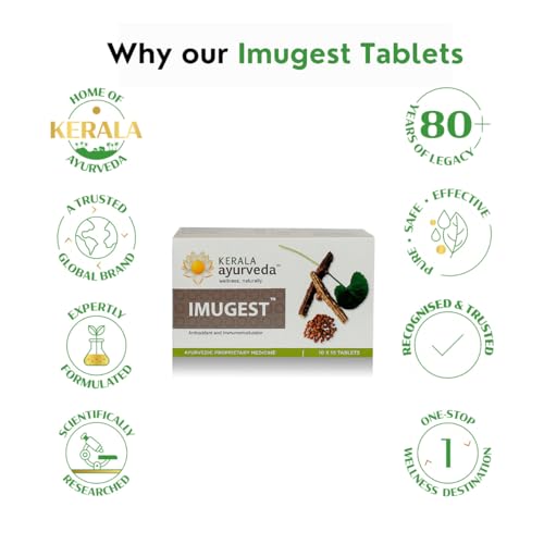 • Strengthen your body's defenses and safeguard your health with all season long with Kerala Ayurveda Imugest your year-round immunity shield. Enriched with the goodness of antioxidant herbs Imugest is the ideal immunity booster for adults.