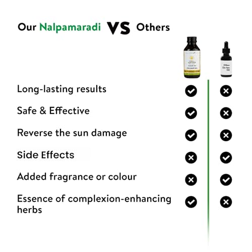• The ingredients in Nalpamaradi Keram like bark of four Ficus species or Nalpamara; Vetiver or Usira; Turmeric or Haridra; Indian gooseberry or Amla; detan and heal damage. When applied regularly Nalpamaradi Keram helps repair the skin and promote the heal