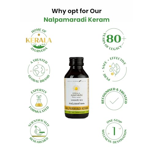 • Quantity: 100 ml; Item Form: Thailam; Kerala Ayurveda Nalpamaradi Keram is a herbal oil for skin brightening and detanning. We use the classical formula from the ancient Ayurveda recipe book- Sahasrayogam with quality ingredients.
