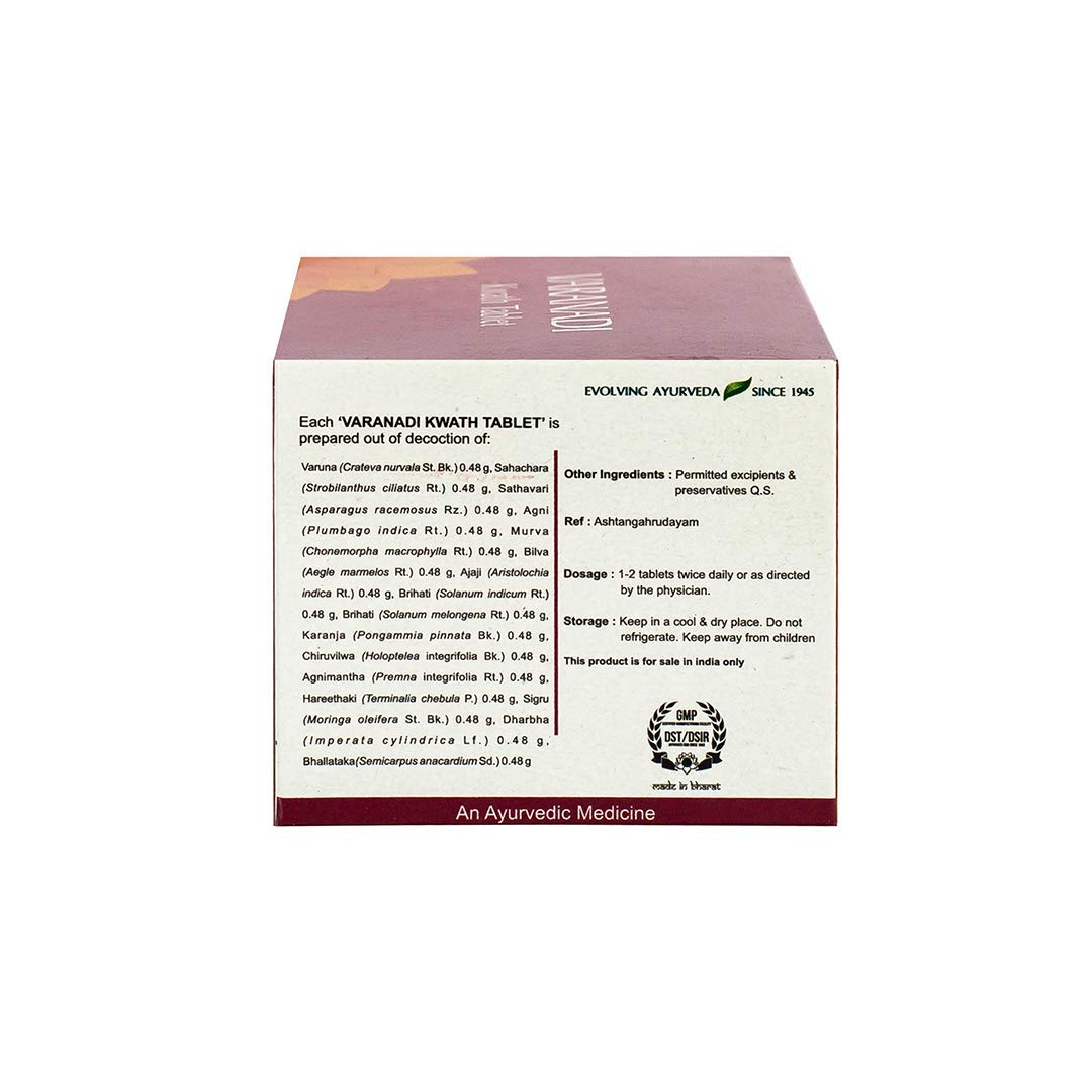 Varuna (Crateva nurvala St. Bk.) 0.48 g Sahachara (Strobilanthus ciliatus Rt.) 0.48 g Sathavari (Asparagus racemosus Rz.) 0.48 g Agni (Plumbago indica Rt.) 0.48 g Murva (Chonemorpha macrophylla Rt.) 0.48 g Bilva (Aegle marmelos Rt.) 0.48 g Ajaji (Aristolochia indica Rt.) 0.48 g Brihati (Solanum indicum Rt.) 0.48 g Brihati (Solanum melongena Rt.) 0.48 g Karanja (Pongammia pinnata Bk.) 0.48 g Chiruvilwa (Holoptelea integrifolia Bk.) 0.48 g Agnimantha (Premna integrifolia Rt.) 0.48 g Hareethaki (Terminalia chebula P.) 0.48 g Sigru (Moringa oleifera St. Bk.) 0.48 g Dharbha (Imperata cylindrica Lf.) 0.48 g Bhallataka(Semicarpus anacardium Sd.) 0.48 g